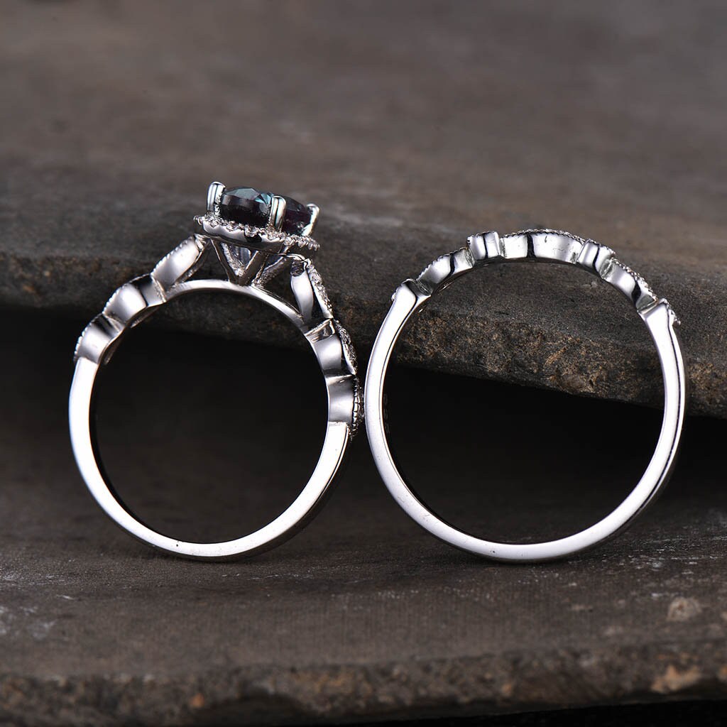 Oval Alexandrite Ring, Sterling Silver Ring, Alexandrite Wedding Ring Set, Engagement Ring, Promise Ring, Color Changing Stone, Gift for Her