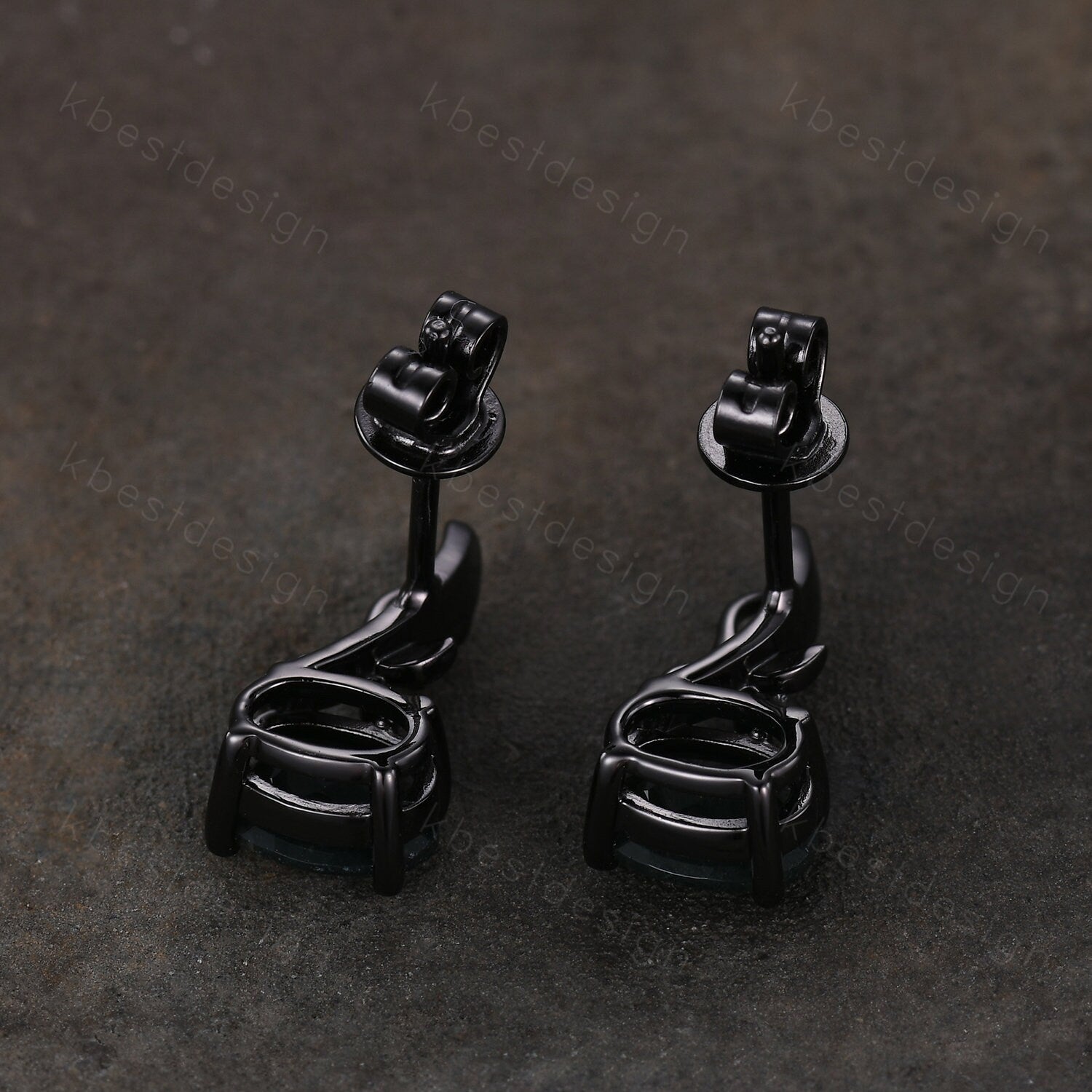 Oval cut moss agate earrings women black gold earring studs nature inspired earrings art deco green agate studs birthday/anniversary gift