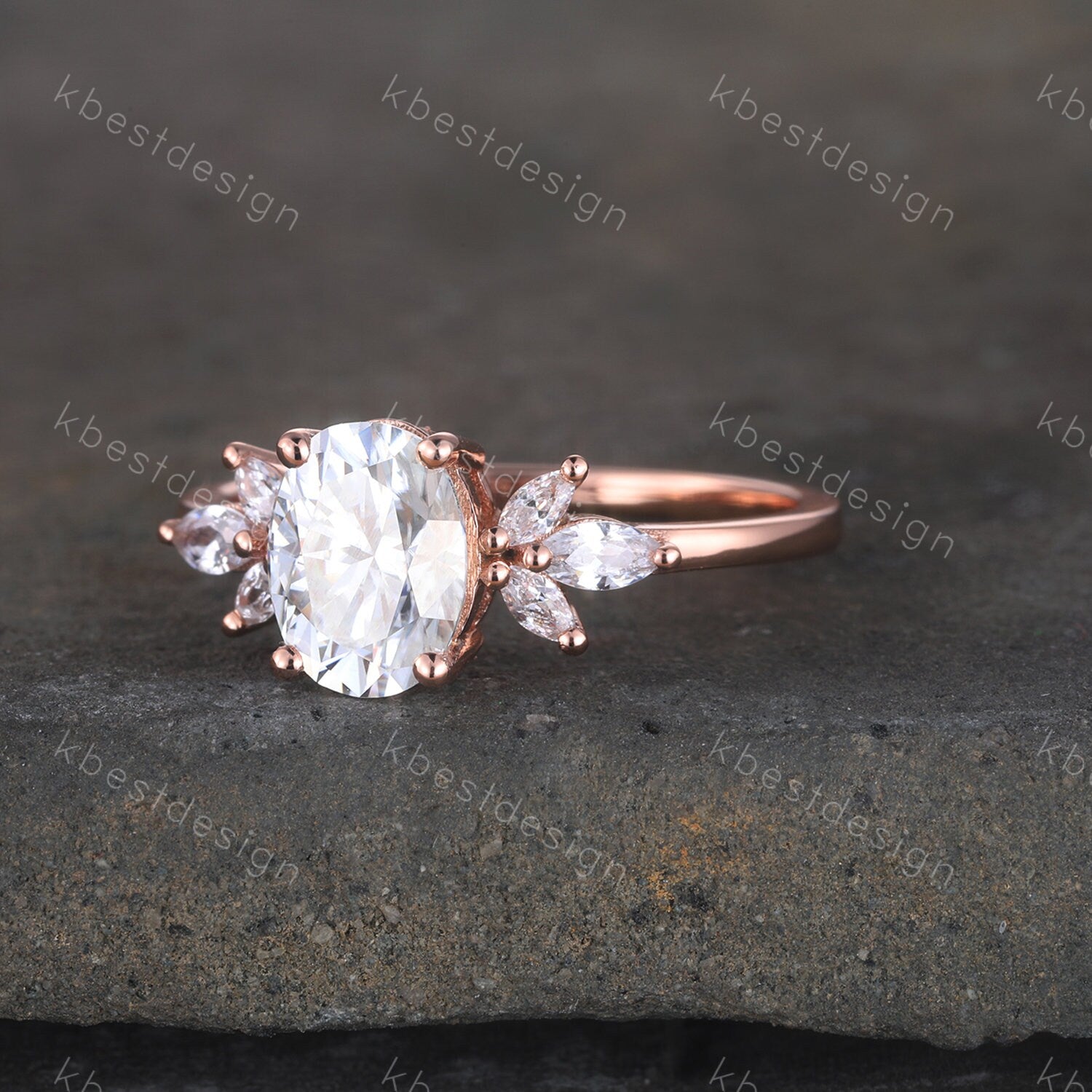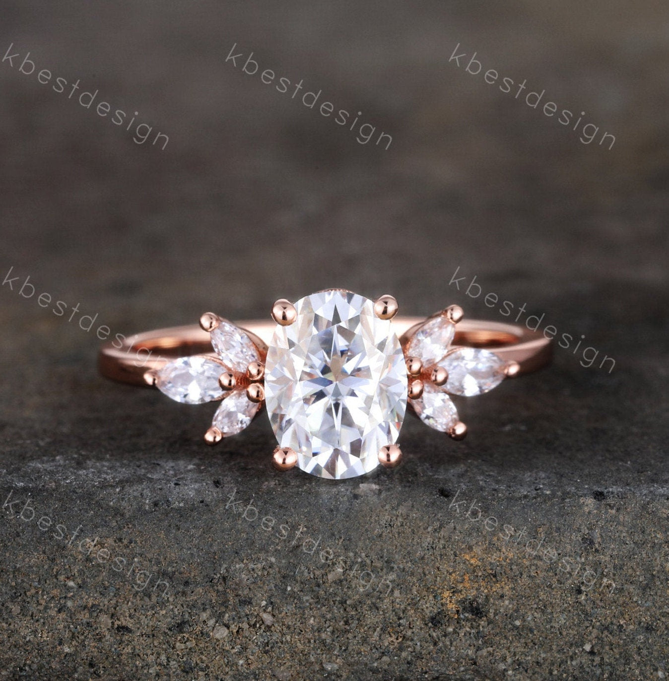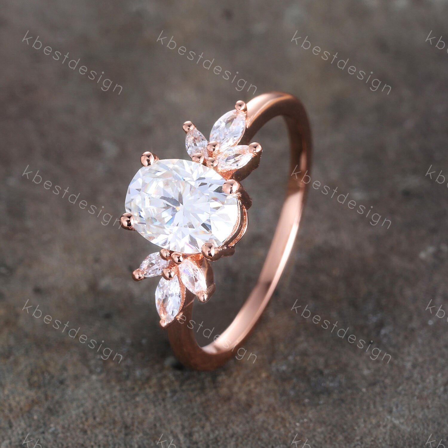 Oval Engagement Ring, Rose Gold Engagement Ring, Unique Marquise Cluster Ring, Oval Cut Ring, Promise ring, Rose Gold Wedding Ring