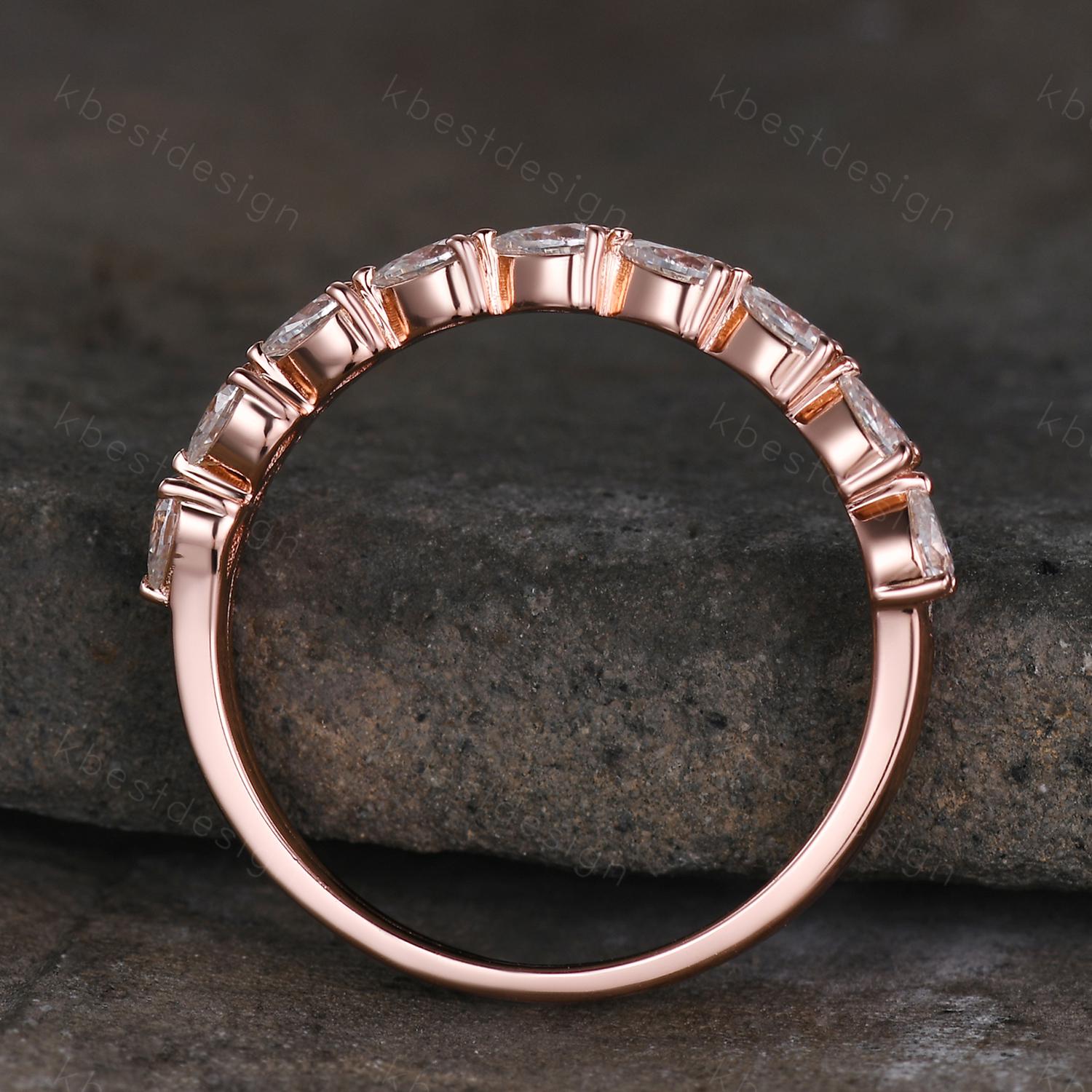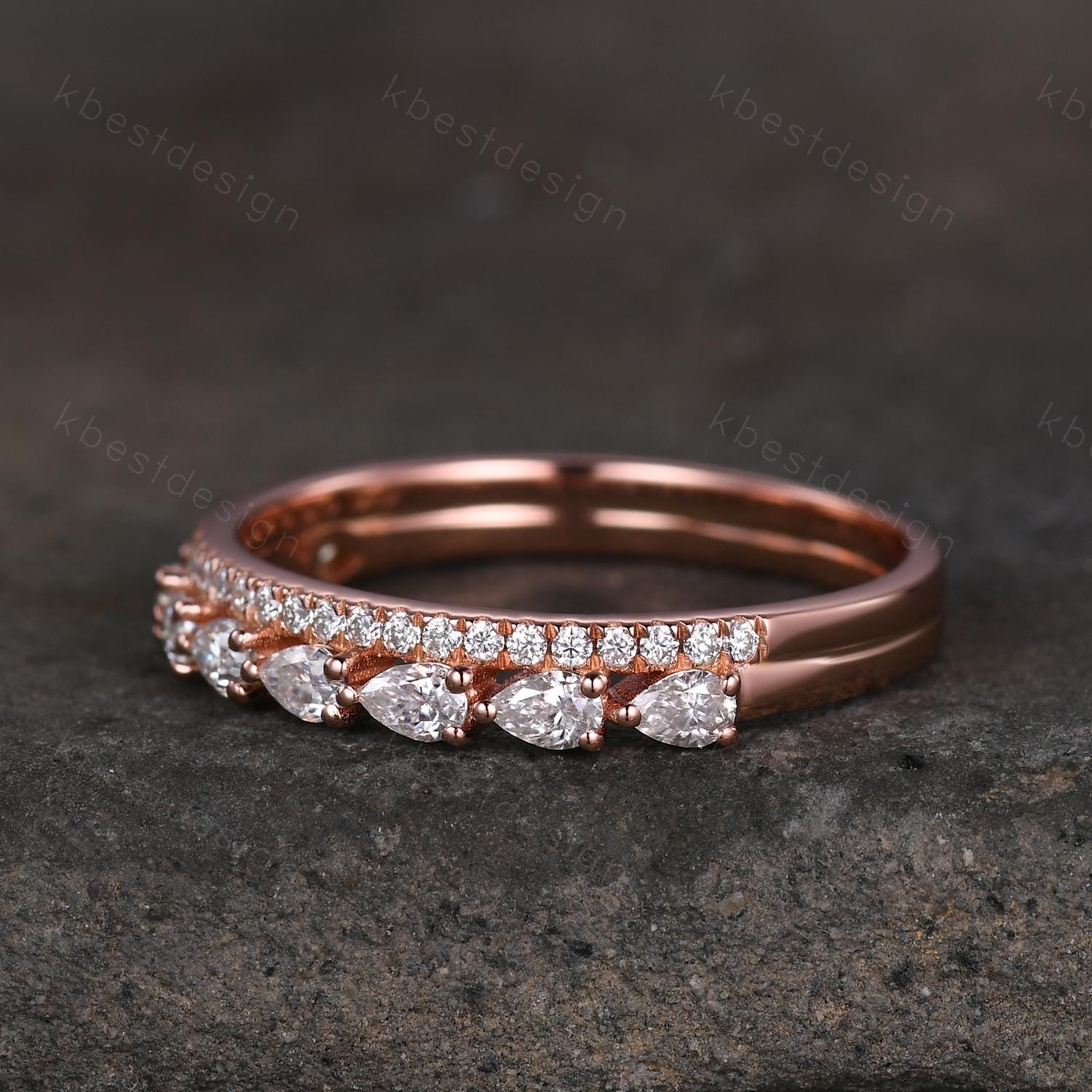 Pear cut Moissanite wedding band rose gold double band ring half eternity band art deco stacking matching band unique anniversary gift