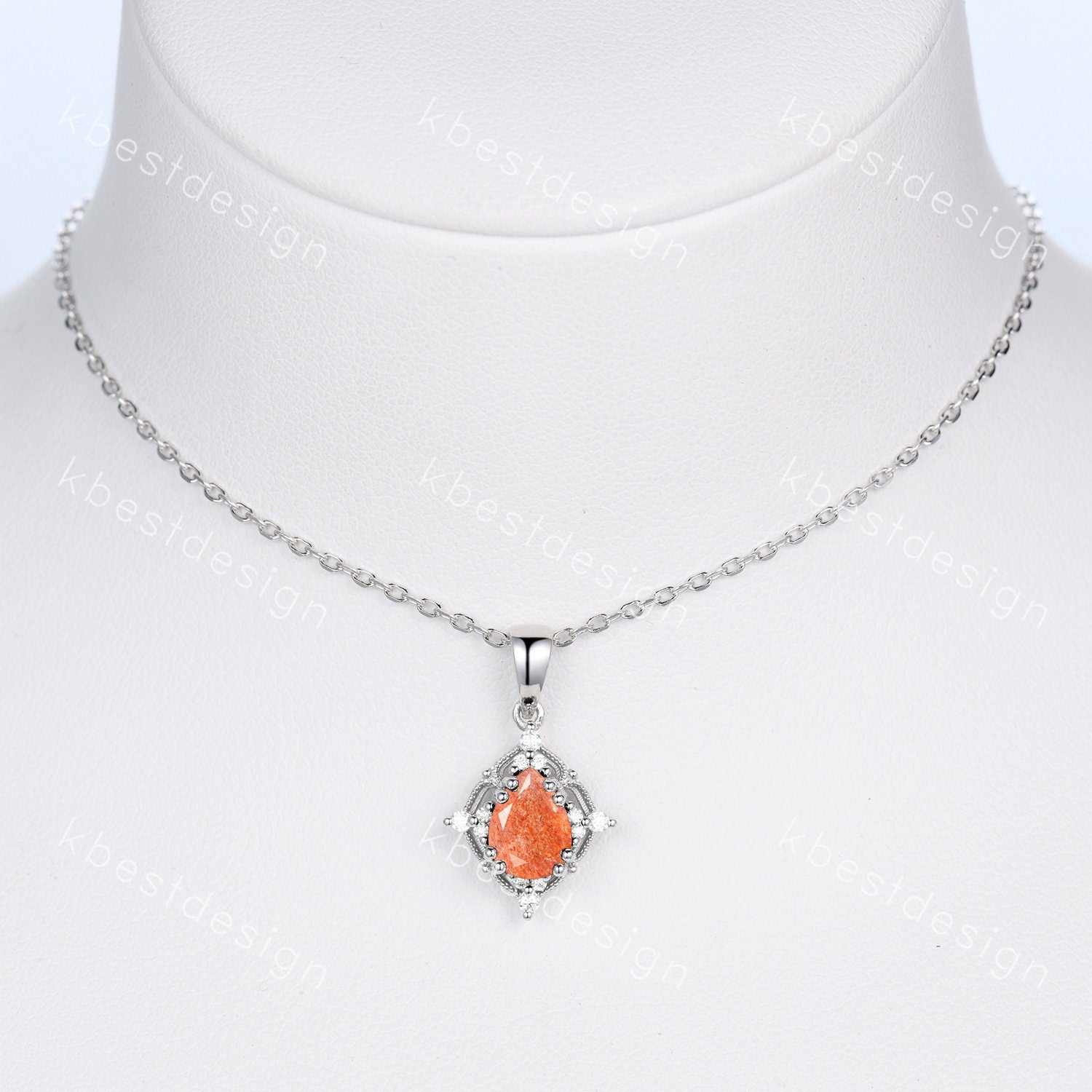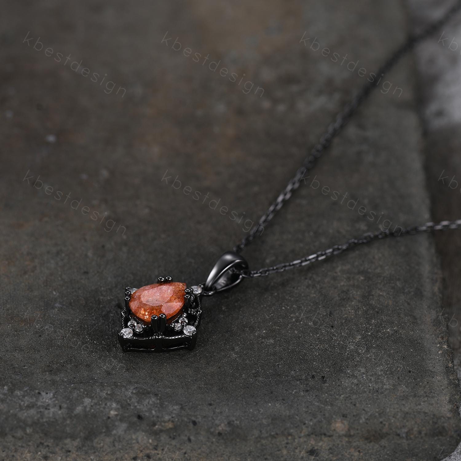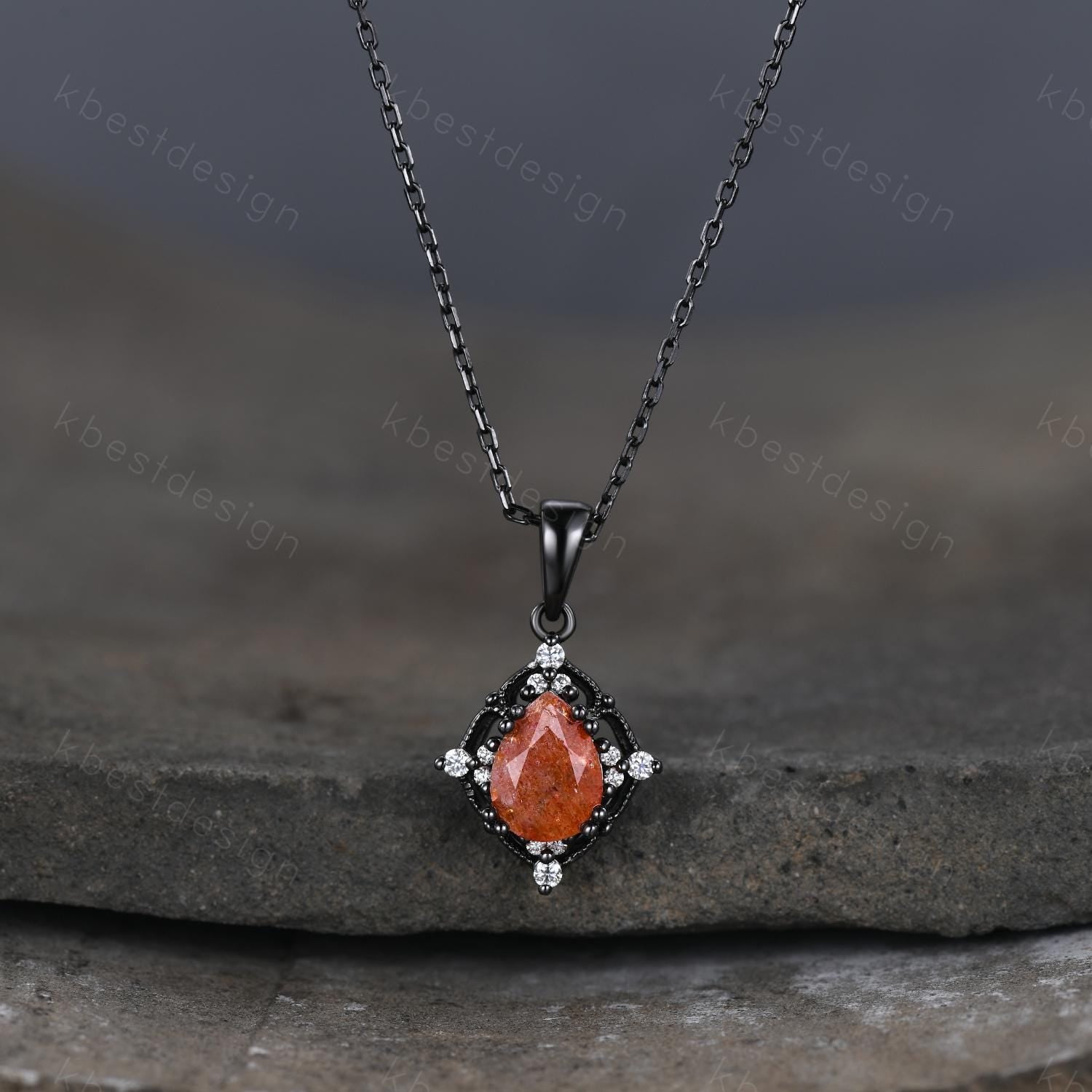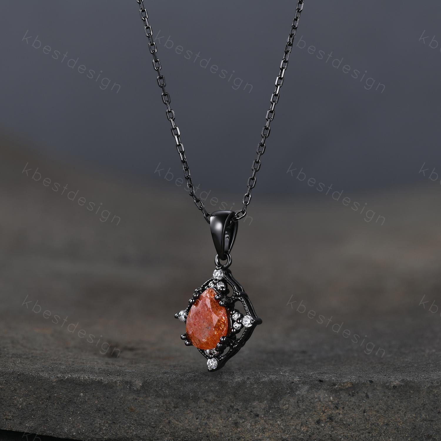 Pear cut Sunstone Necklace Antique Art Deco Moissanite Pendant Necklace Gothic Black Gold Necklace for Women Birthday/Promise Gift for Her. For those who are looking for orange gemstone jewelry which is handcrafted in details, this unique sunstone necklace would be a perfect choice for you. Whether it be a Birthday gift for her, an anniversary gift her, or a celebration of yourself, this sunstone jewelry is the perfect gift from the heart.