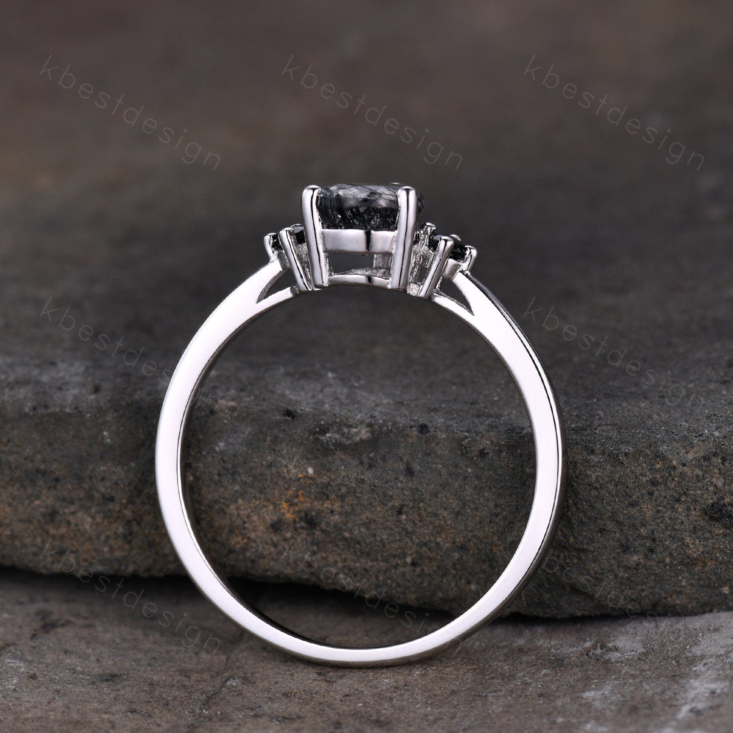 This is a beautiful Black Quartz Rutilated engagement ring in 925 sterling silver.