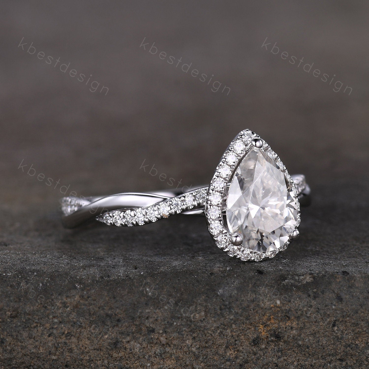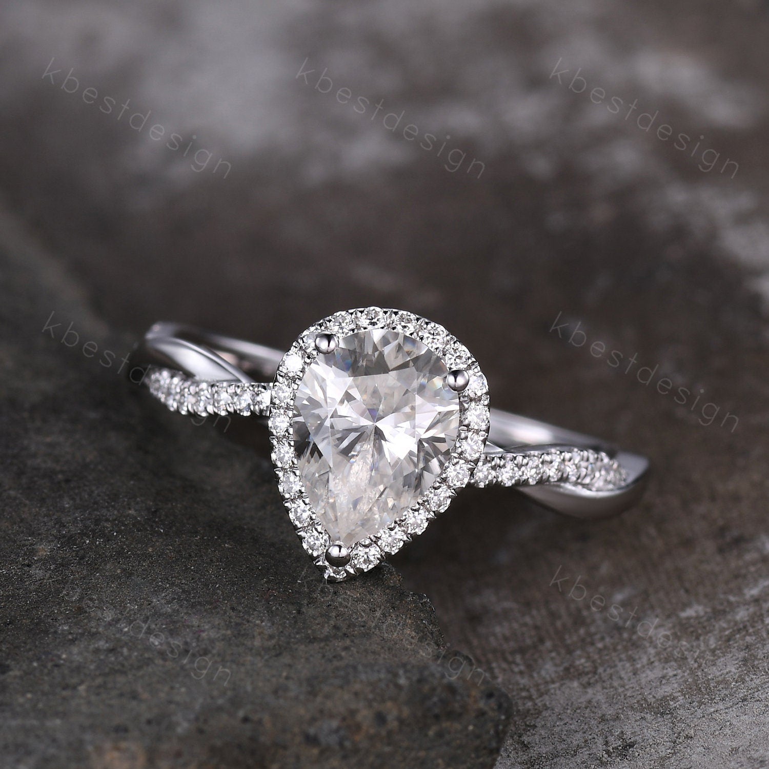 This is a Pear shaped moissanite engagement ring 1.5ct twisted moissanite Bridal Ring unique art deco wedding ring for women promise anniversary ring.