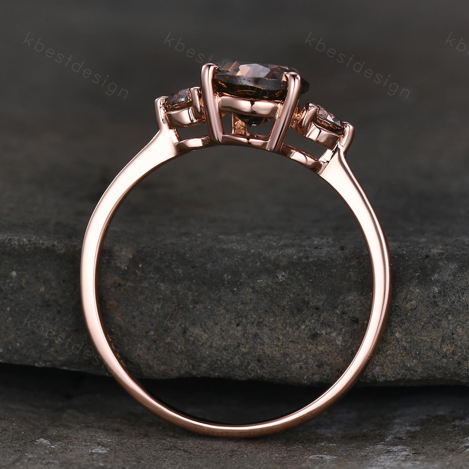 Pear shaped smoky quartz Engagement Ring Rose Gold three stone engagement ring Vintage champagne Diamond Wedding ring Bridal promise ring