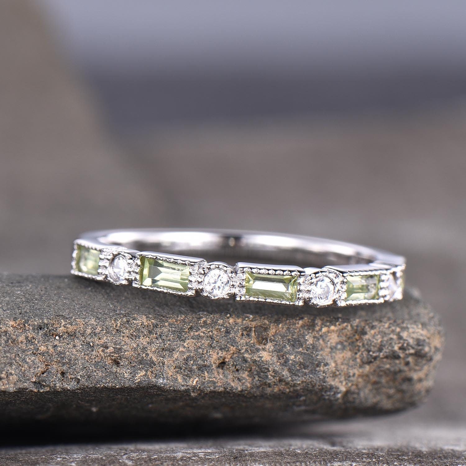 Peridot Baguette Ring, Sterling Silver Peridot Ring, Peridot Stacking ring, August Ring, Dainty Peridot Ring, Gold Ring, Gift Ring