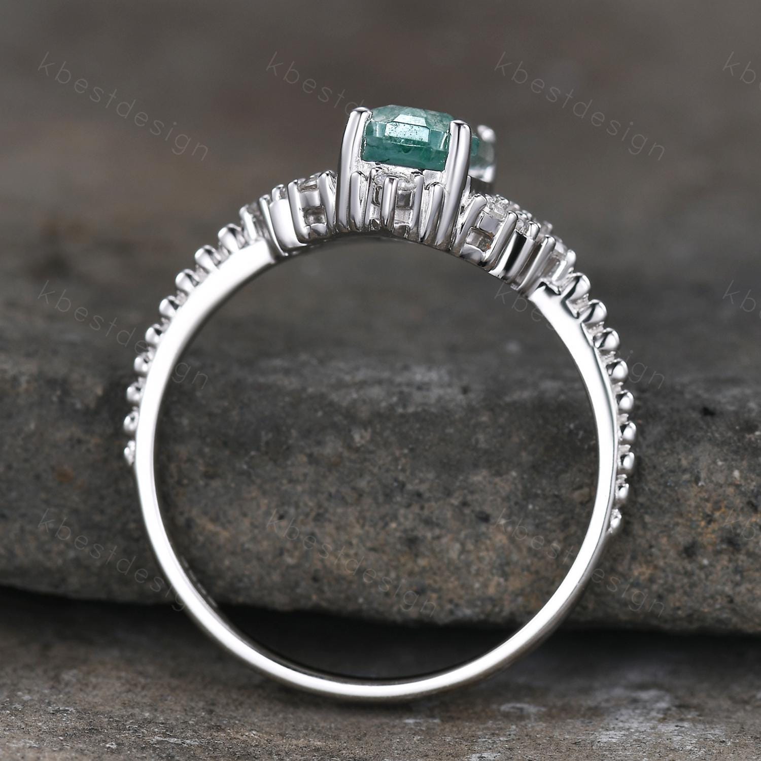 Retro moss agate engagement ring Long hexagon cut ring for women moissanite cluster ring art deco promise ring bridal ring
