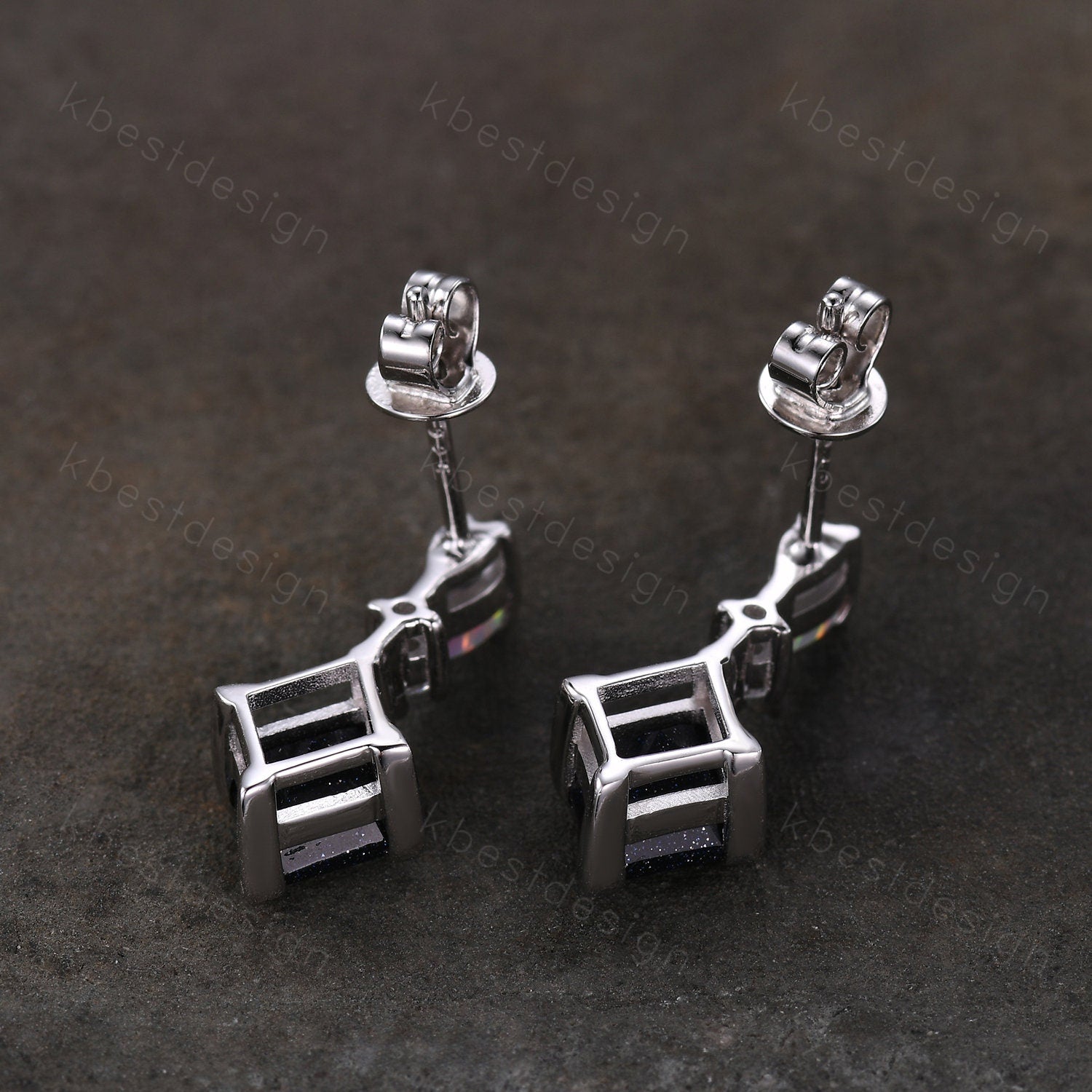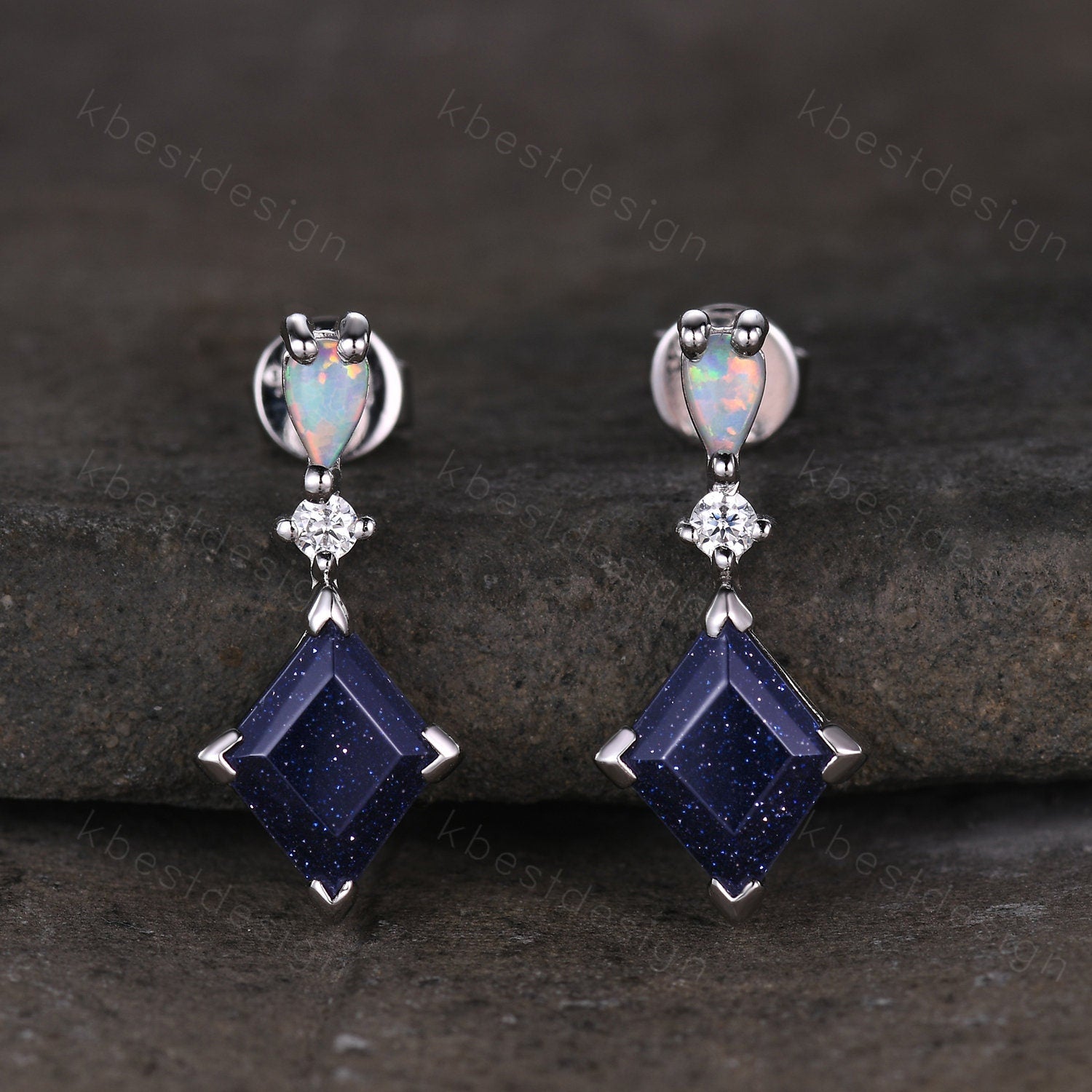 Rhombus cut blue sandstone earring studs, silver opal & galaxy sandstone earrings, best friend gift, dangle studs, anniversary gift for her