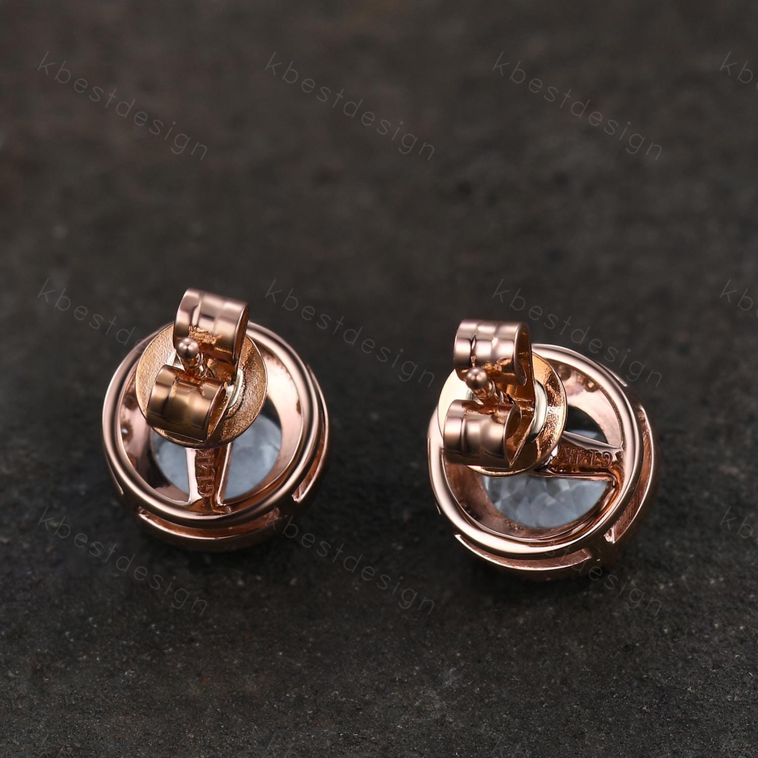 Round Aquamarine Earrings, Aquamarine Birthstone Stud Earrings, Rose Gold Earrings, Genuine Aquamarine Earrings, March Birthstone Earrings.