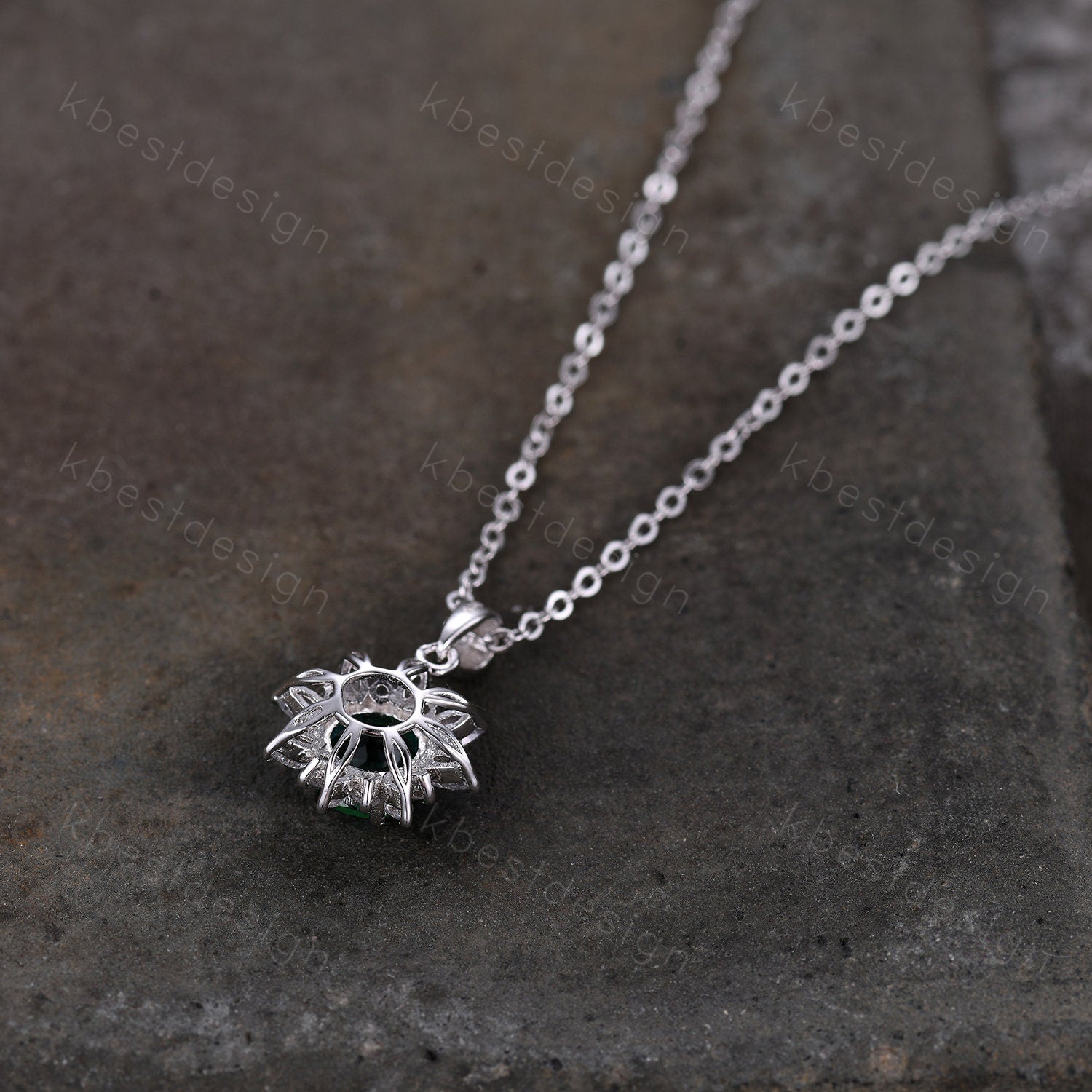 Round cut green emerald necklace solid 14k 18k white gold vintage unique Personalized pendant women moissanite anniversary bridal gift