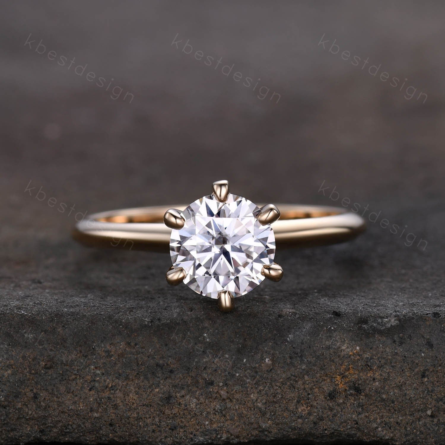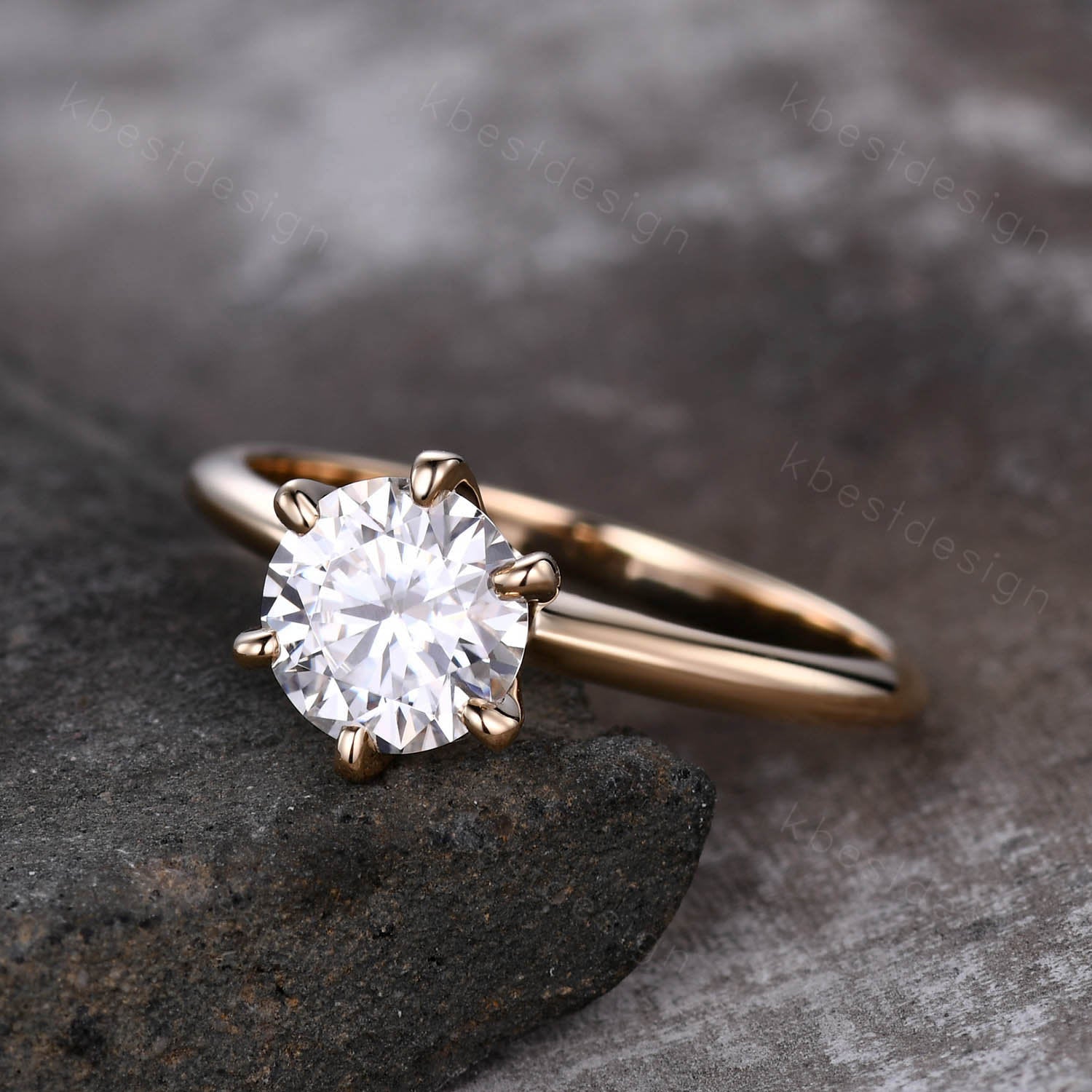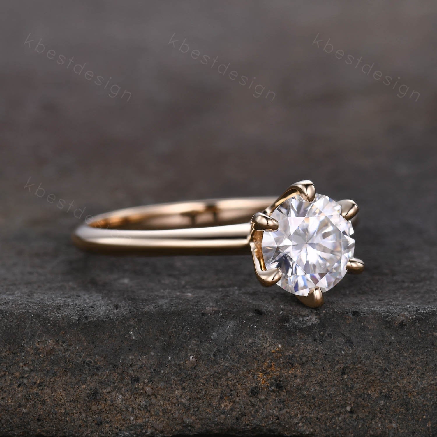 Round cut moissanite engagement ring 1.2ct solitaire bridal ring 14k solid gold ring 6 prong engagement ring dainty Promise Anniversary ring
