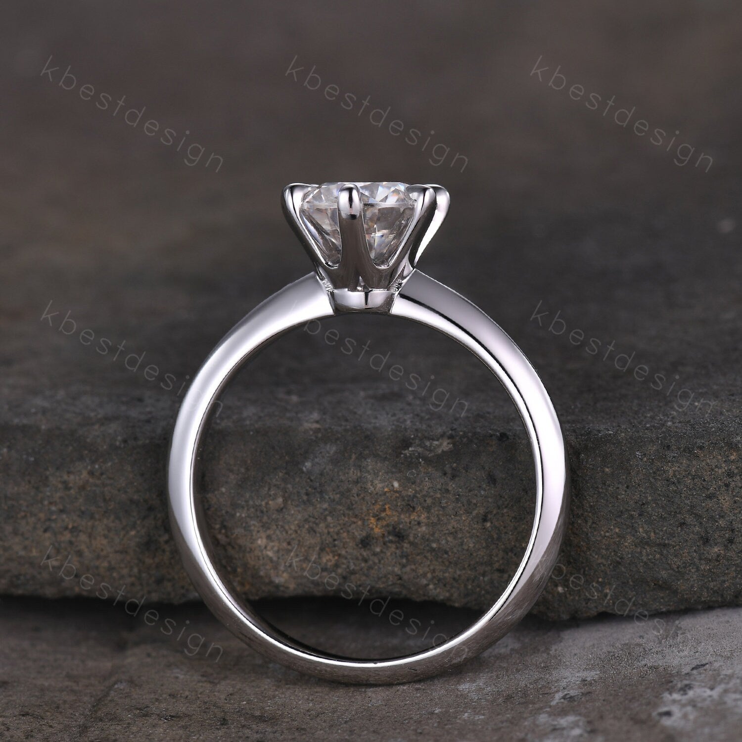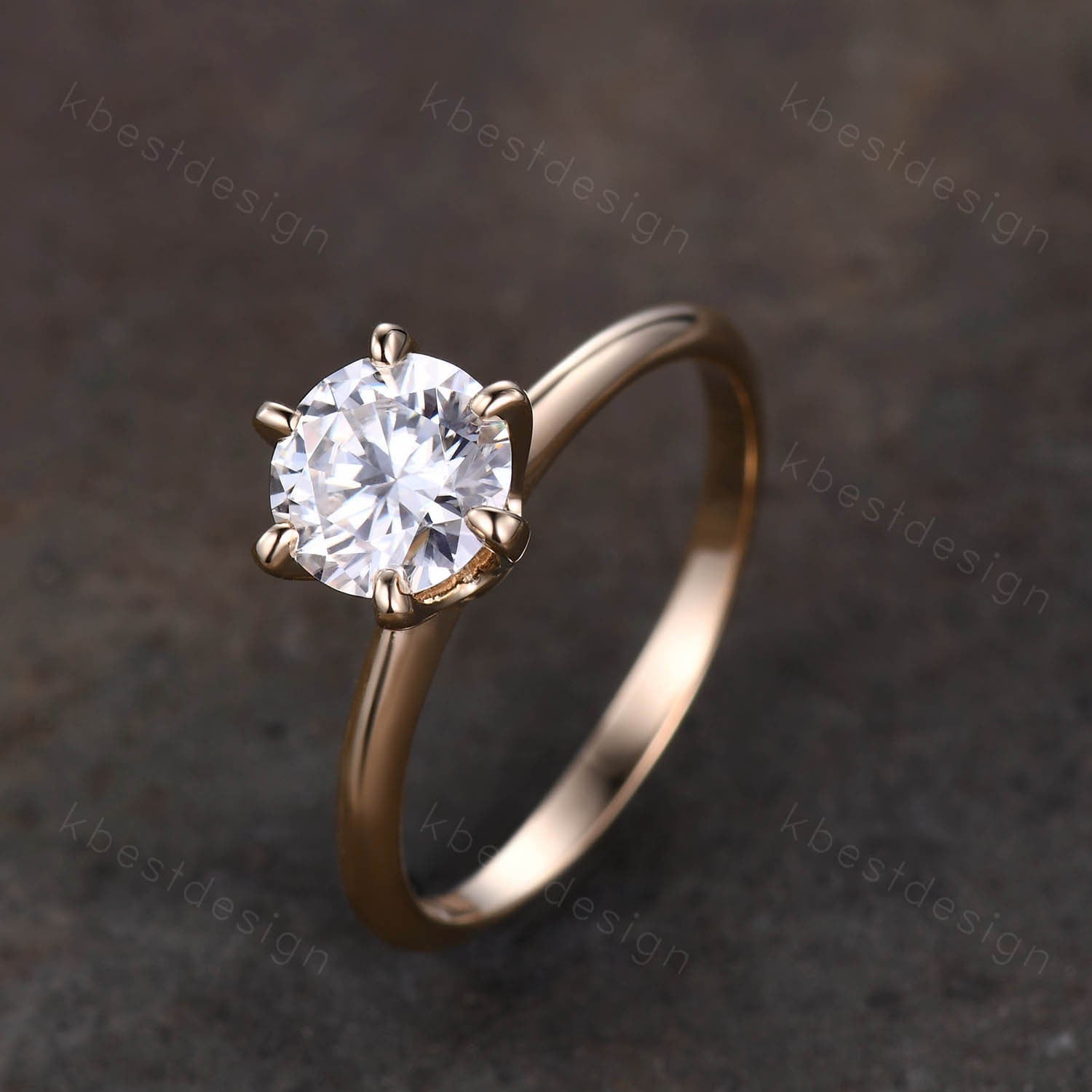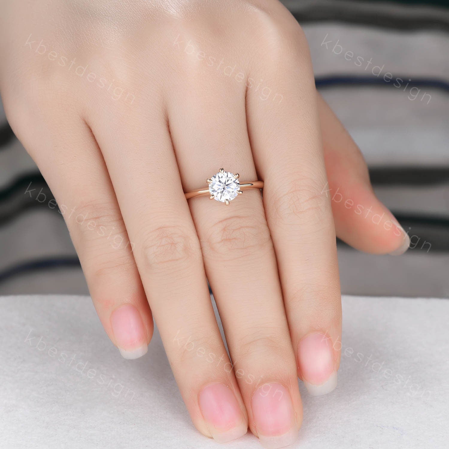 Round cut moissanite engagement ring 1.2ct solitaire bridal ring 14k solid gold ring 6 prong engagement ring dainty Promise Anniversary ring