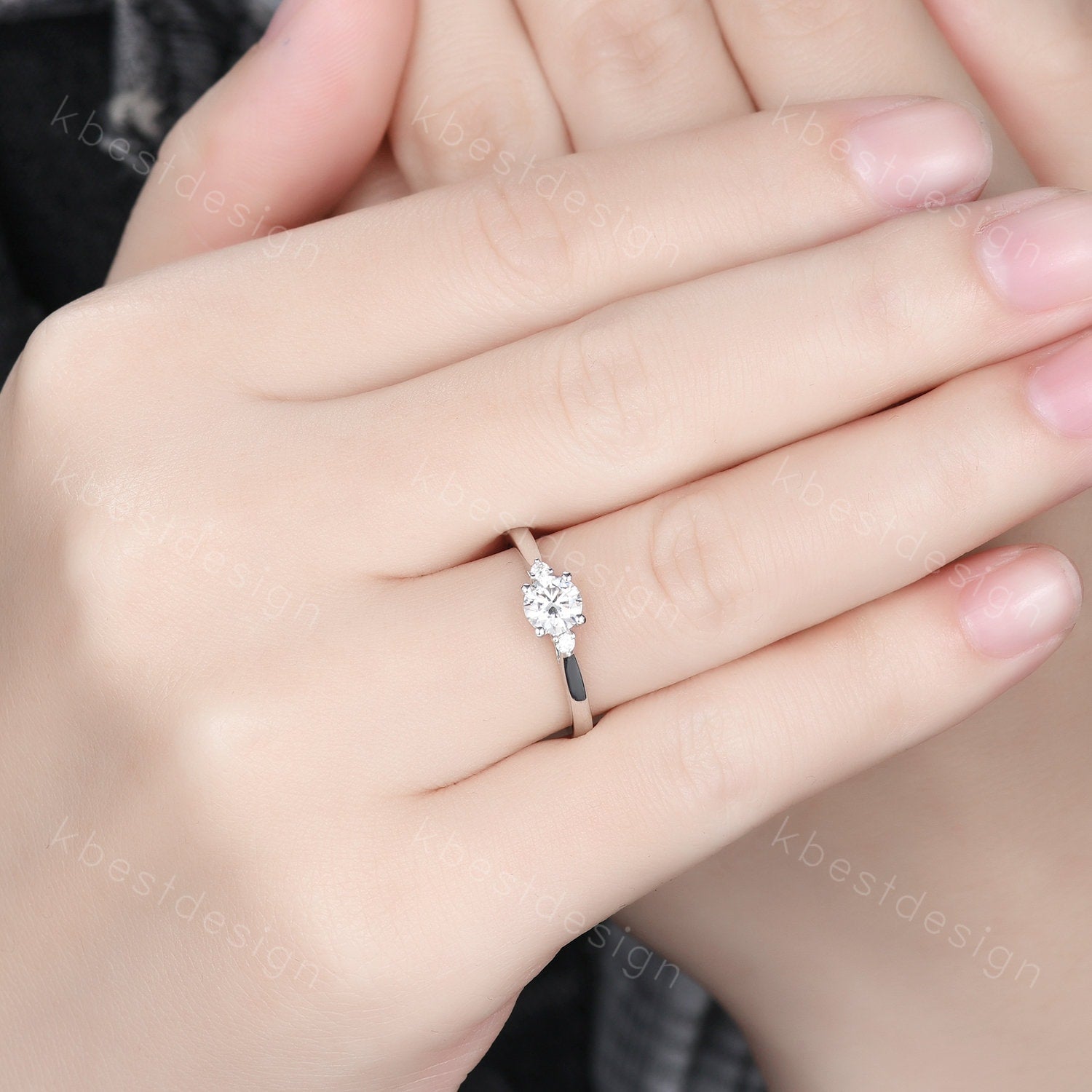This is a Round cut moissanite engagement ring 5mm dainty moissanite Bridal Ring unique art deco wedding ring for women three stone promise ring.
