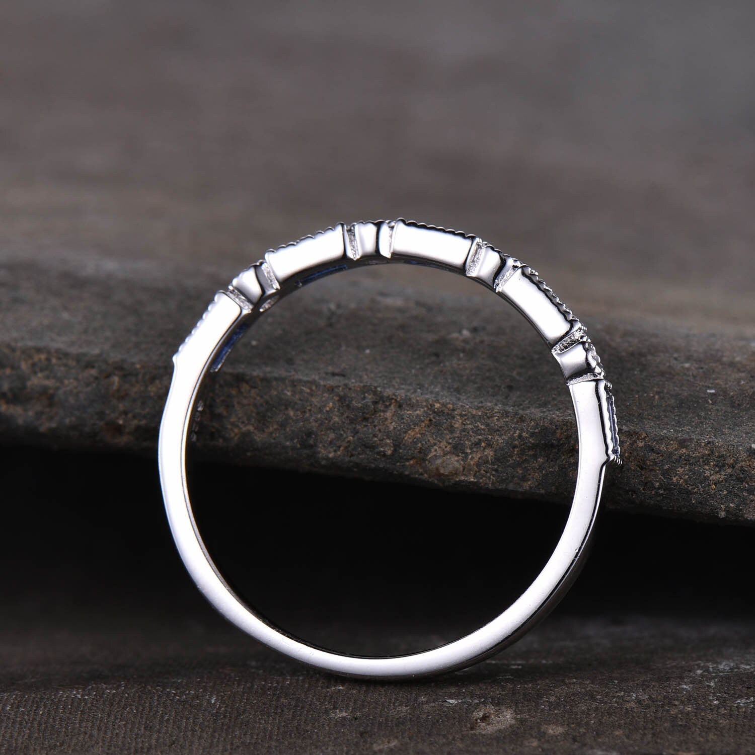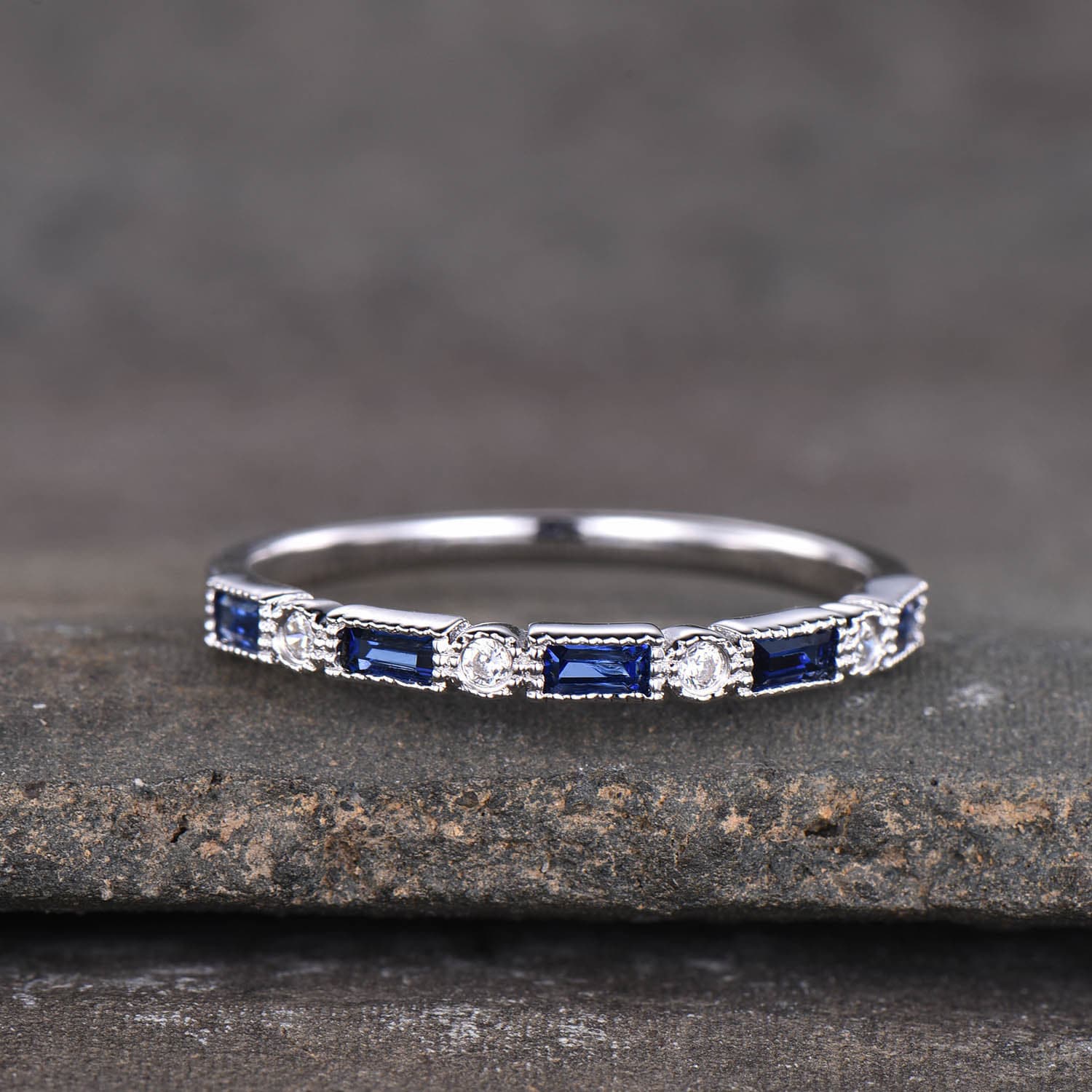 Sapphire Ring, Baguette Sapphire Wedding Ring, September Birthstone Ring, Minimalist Ring, Stacking Ring, Silver Vintage Ring, White Gold