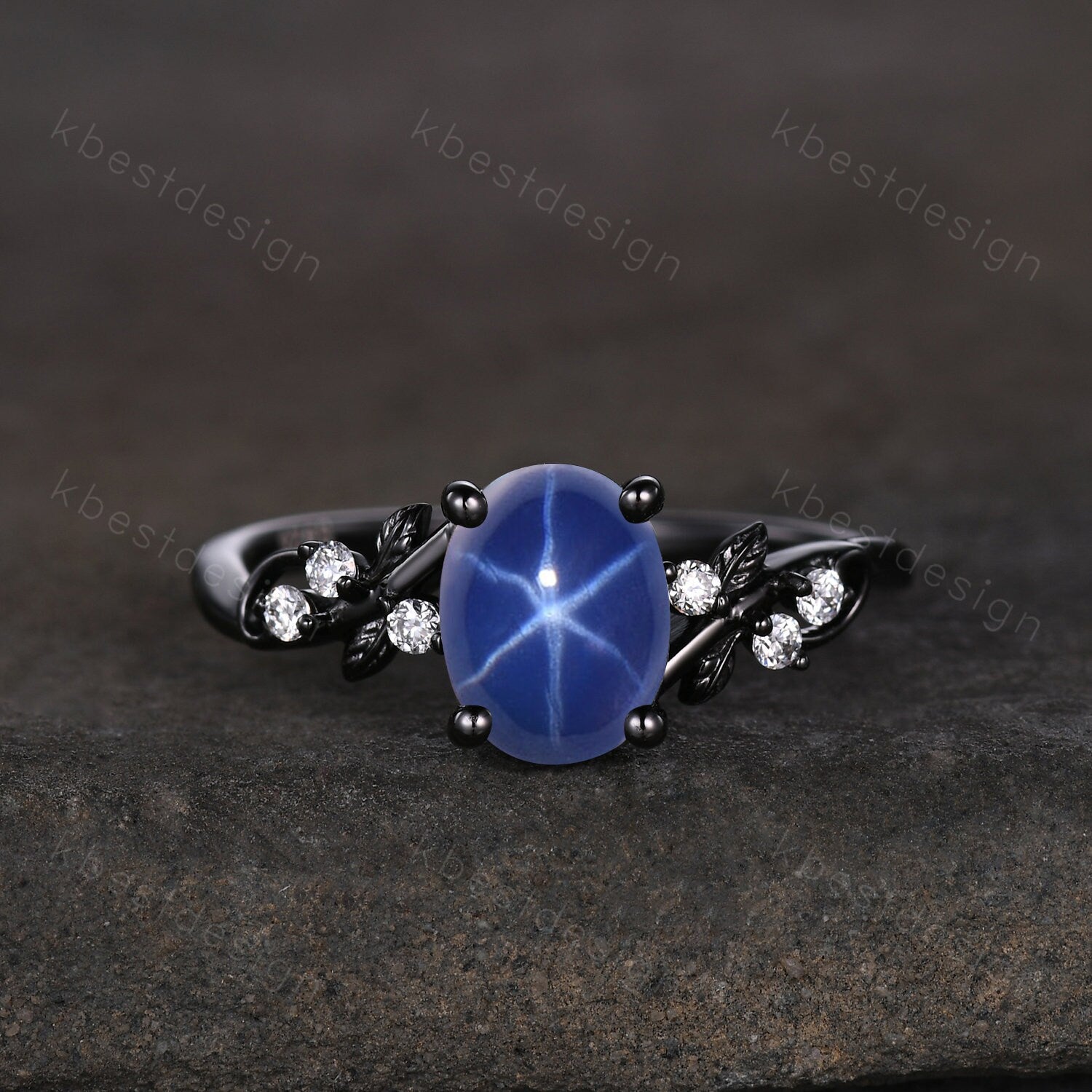 Main Stone: 6x8mm oval shaped blue star sapphire