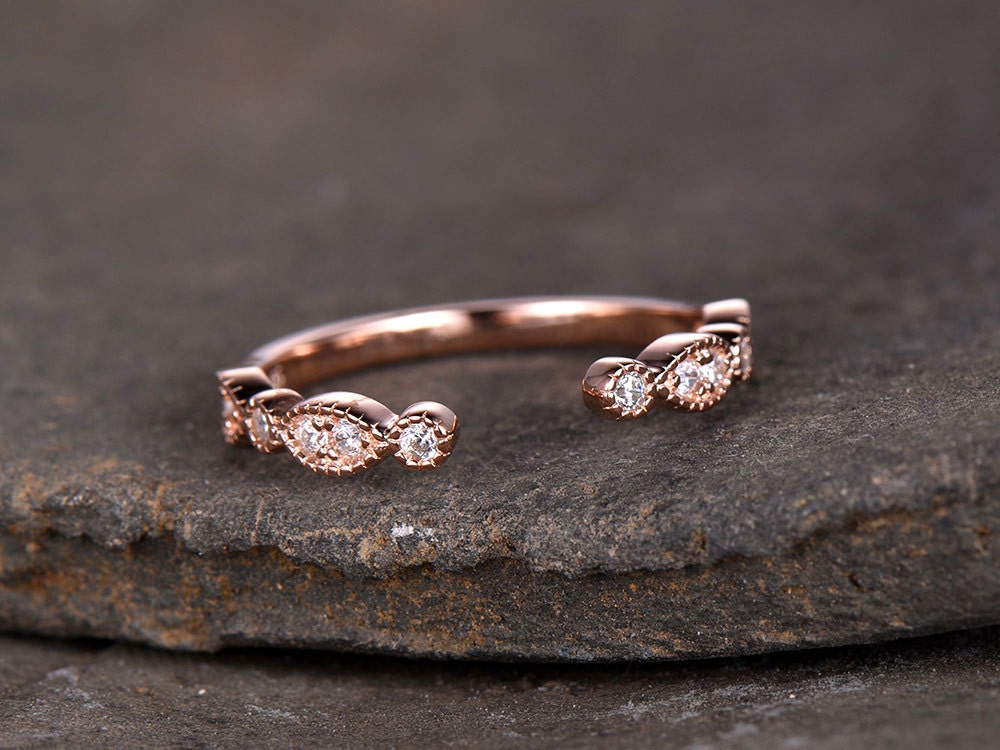 Sterling silver ring/Cubic Zirconia wedding band/CZ wedding ring/stack ring/Open Art Deco Matching band/Half eternity ring/Rose gold plated