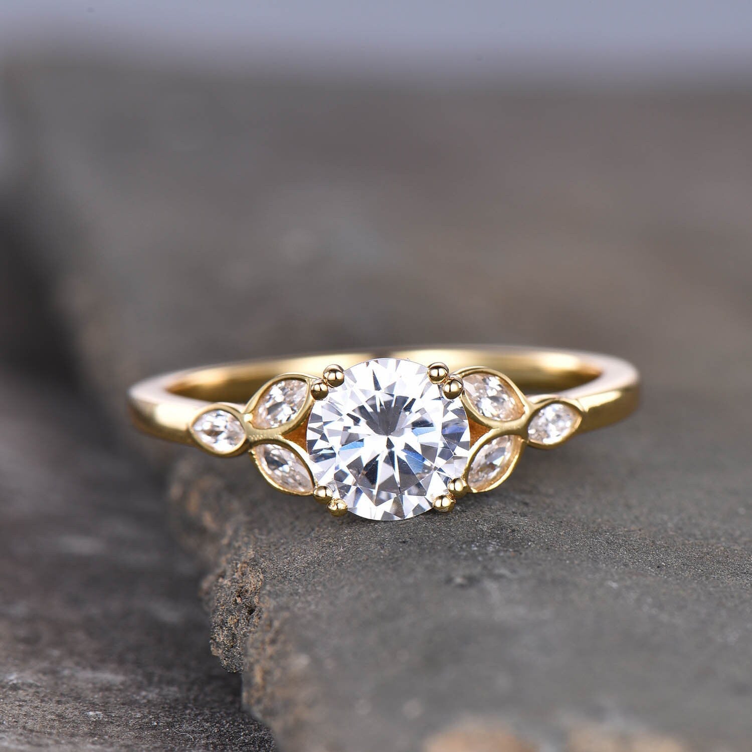 Sterling silver ring/Round cut Cubic Zirconia engagement ring/CZ wedding ring/Three flower marquise/promise ring/Xmas gift/Rose gold plated