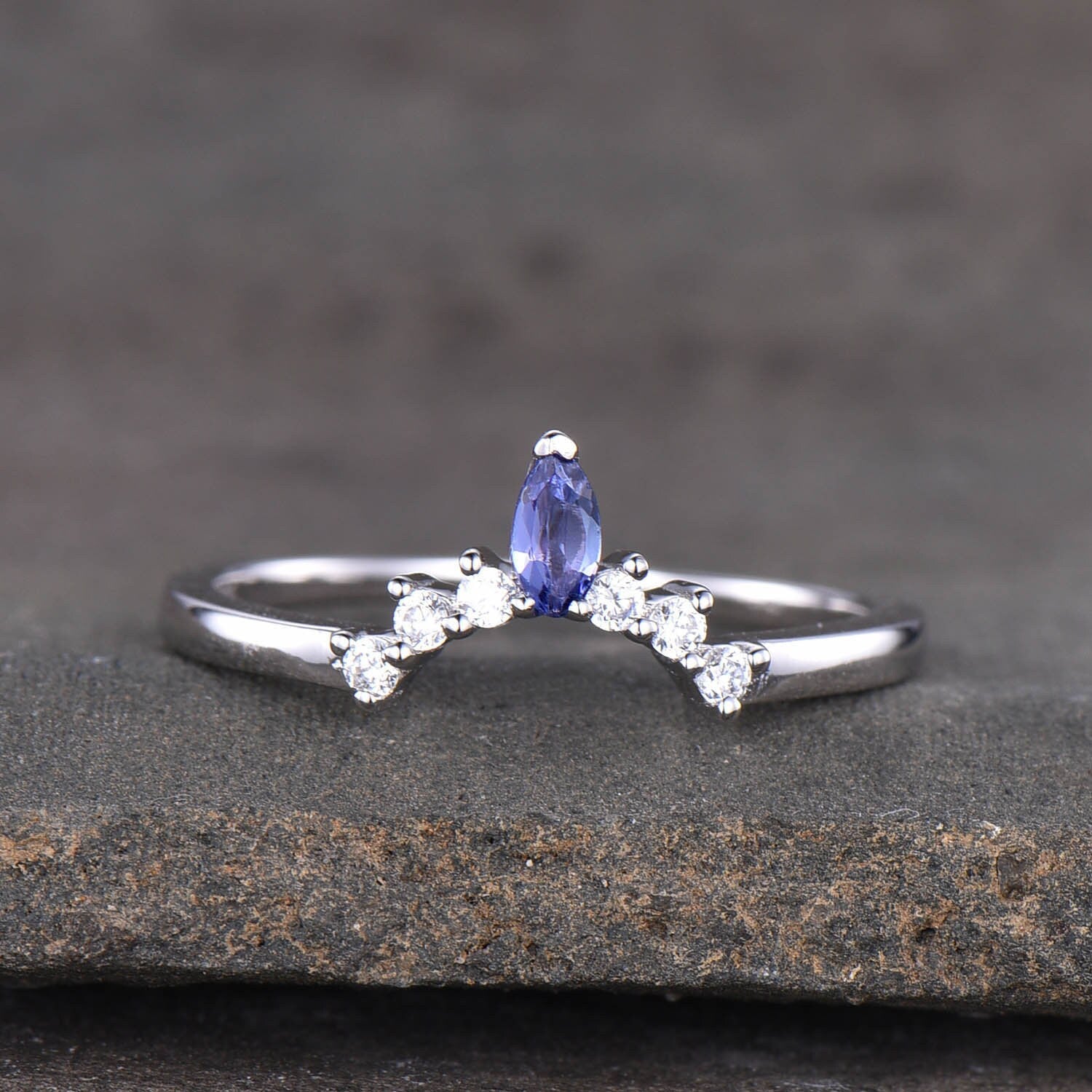 Tanzanite Ring, Sterling Silver Tanzanite Wedding Ring, Stacking Rings, Crown Curved Matching Band, Wedding Ring, Gold Ring, Stackable