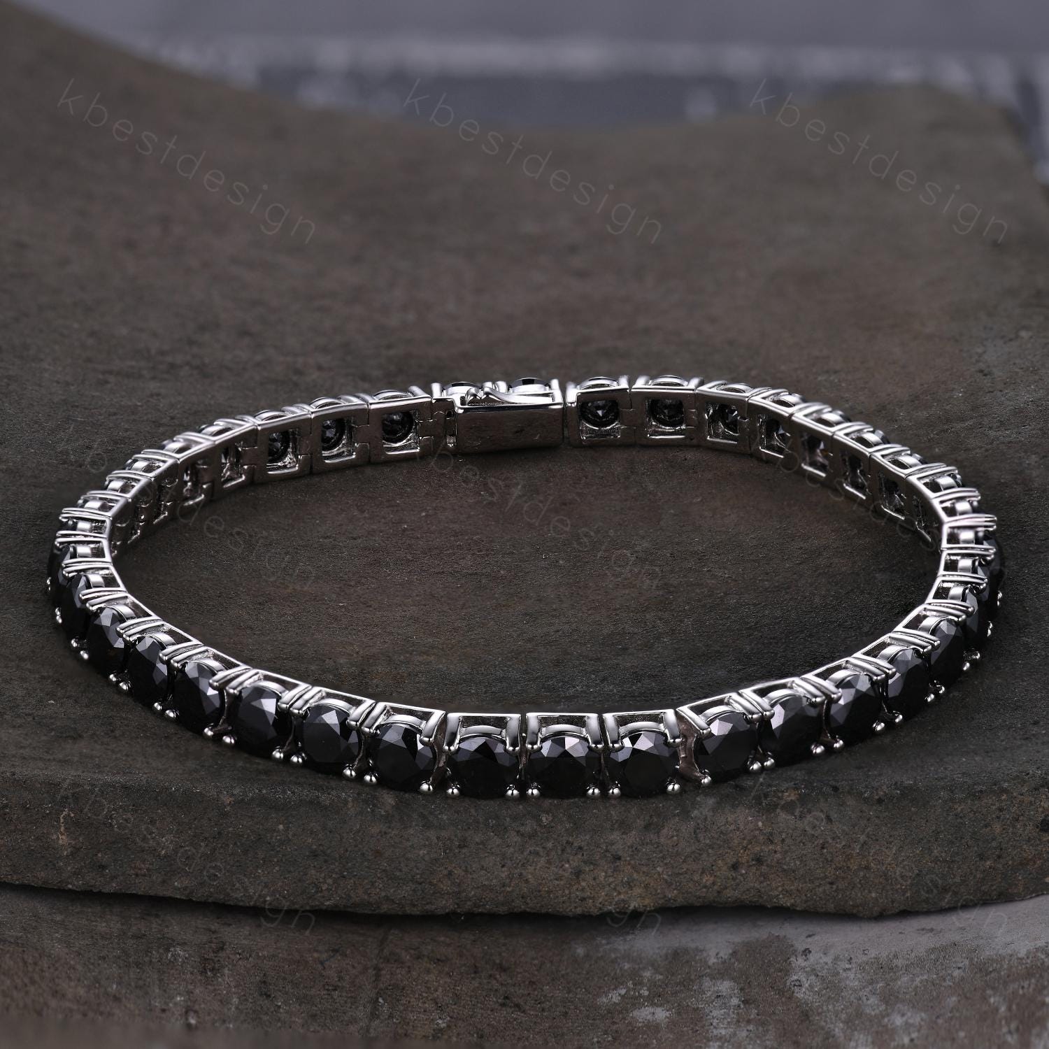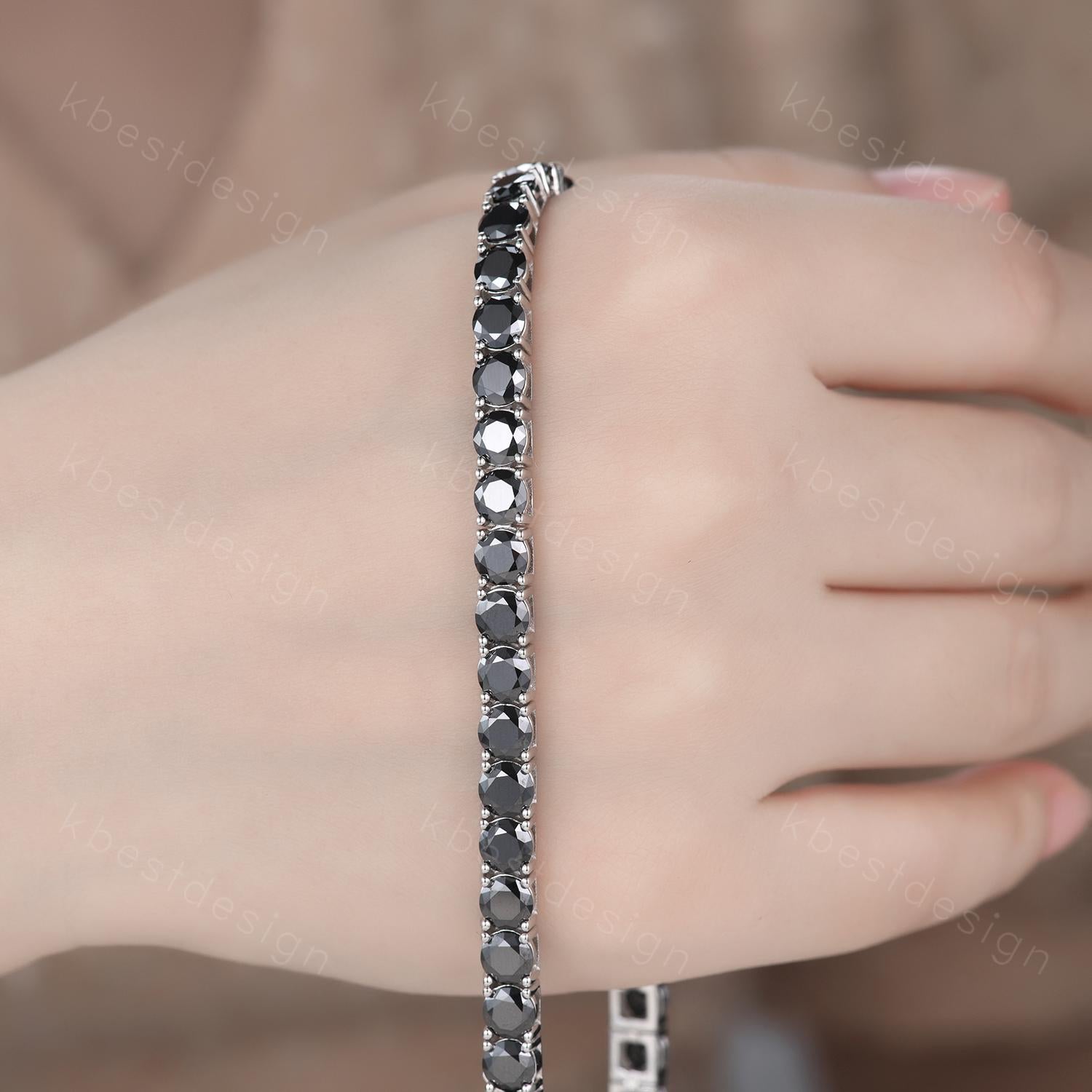 Unique 5mm Black Moissanite Tennis Bracelet, Eternity Round Cut Bracelet for Women, Moissanite Wedding Jewelry, Boho Silver Bracelet