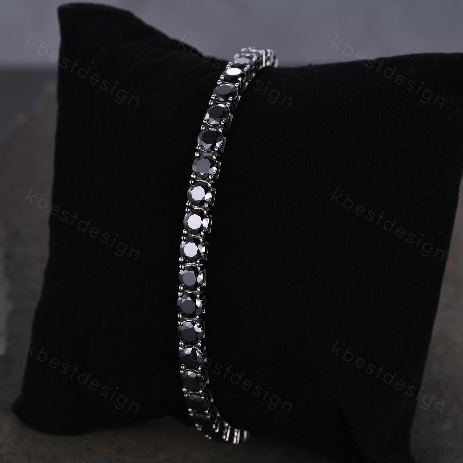 Unique 5mm Black Moissanite Tennis Bracelet, Eternity Round Cut Bracelet for Women, Moissanite Wedding Jewelry, Boho Silver Bracelet.