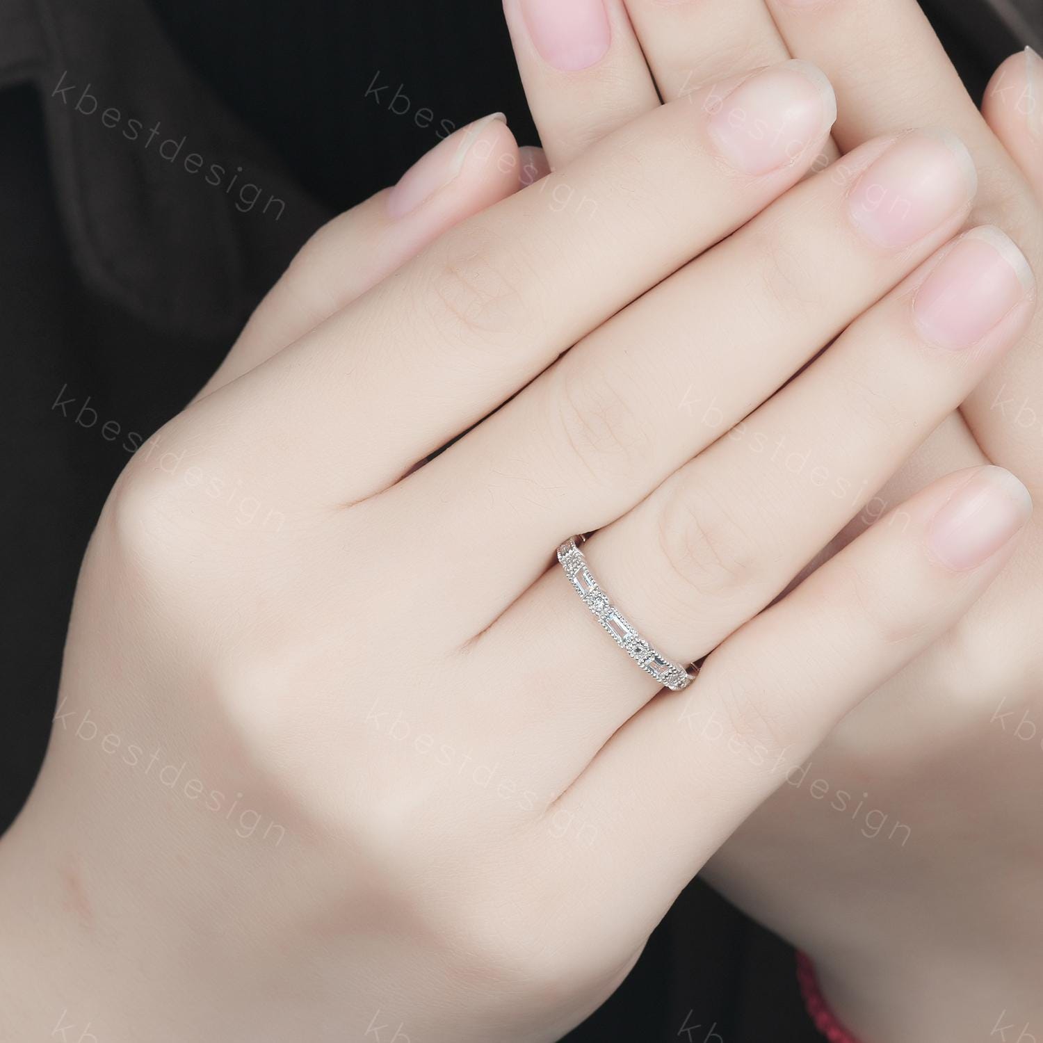 This is a Unique Aquamarine Wedding Band, Baguette Aquamarine Wedding Band, March Birthstone Ring, Art deco Wedding Ring, Anniversary Ring Gift