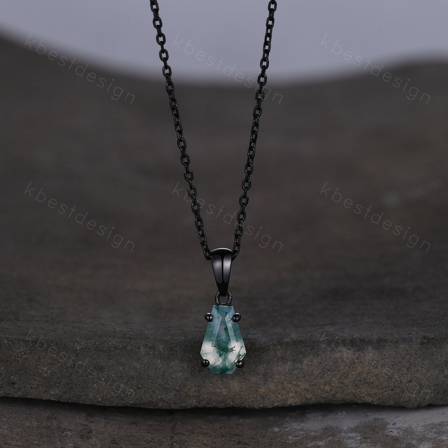 This is a Unique coffin cut green moss agate necklace black gold necklace delicate green agate jewelry minimalist anniversary gift for women. For those who are looking for green jewelry which is handcrafted in details, this unique green moss agate necklace would be a perfect choice for you. Whether it be a Birthday gift for her, an anniversary gift her, or a celebration of yourself, this green moss agate jewelry is the perfect gift from the heart.