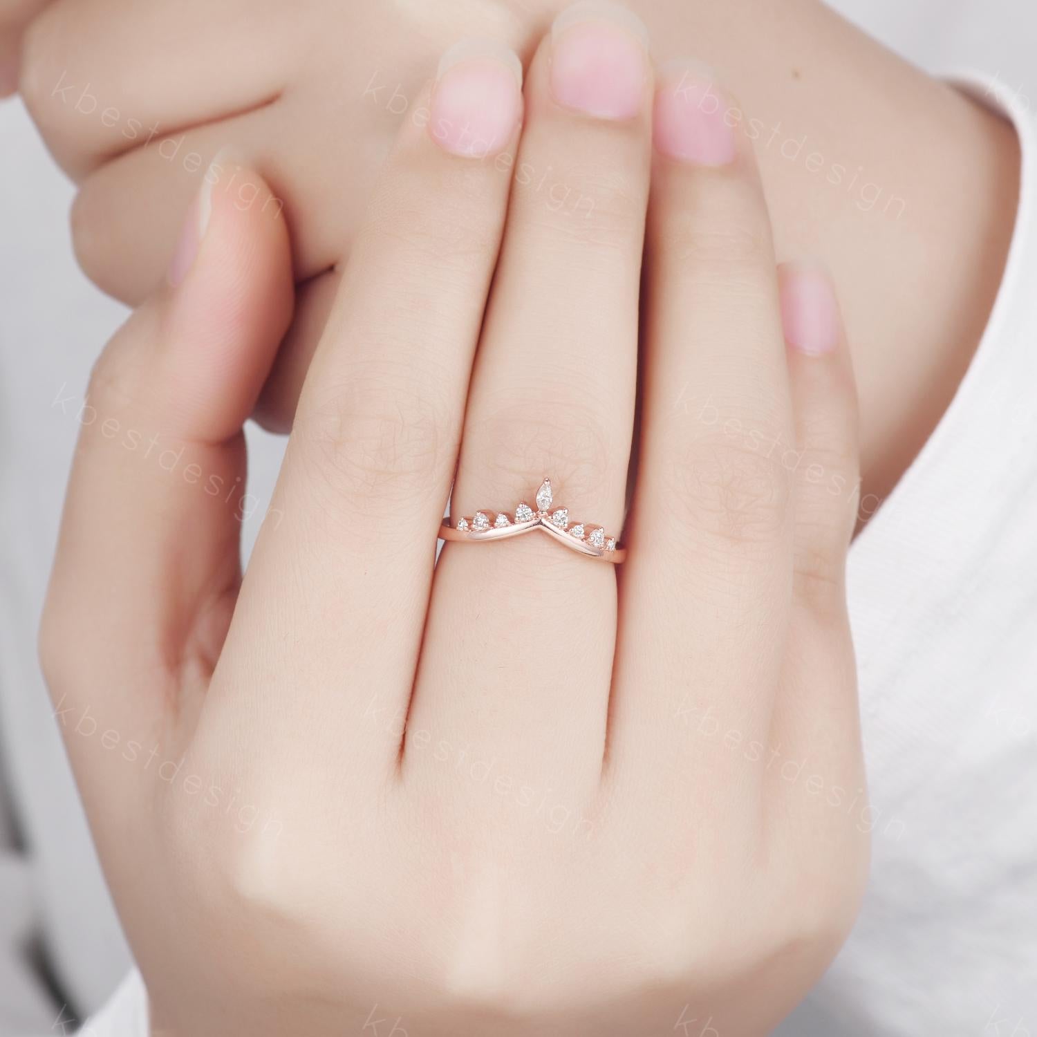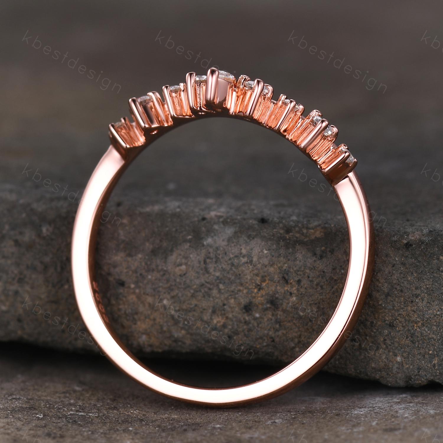Unique curved moissanite wedding band dainty rose gold band for women half eternity stacking matching band bridal anniversary band gift