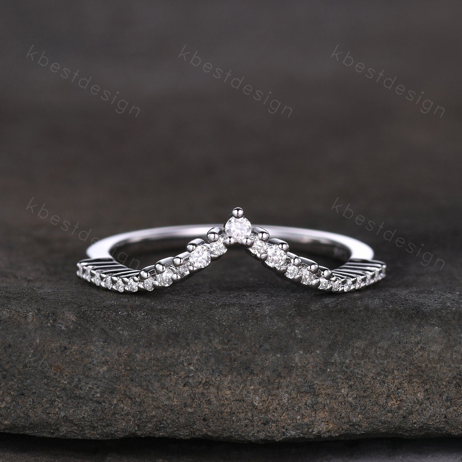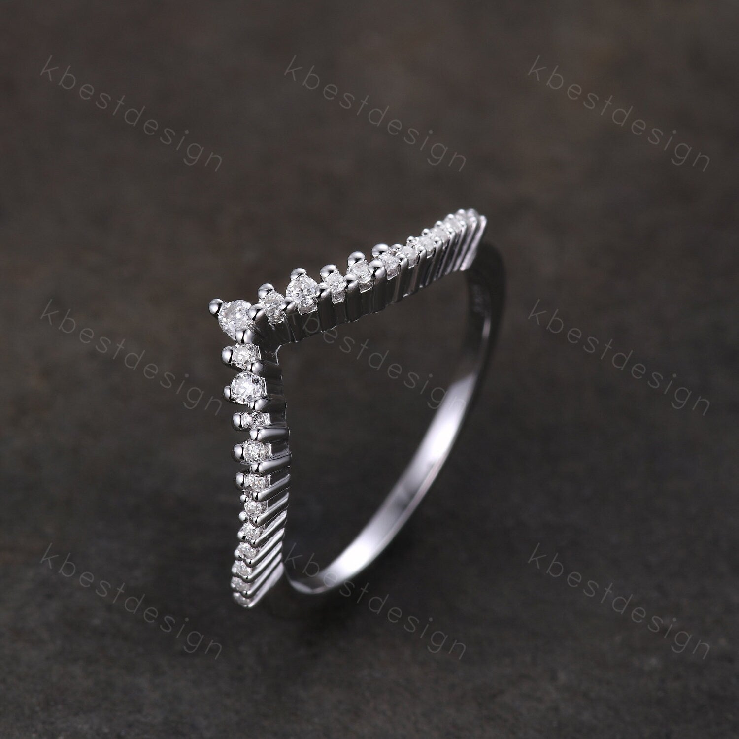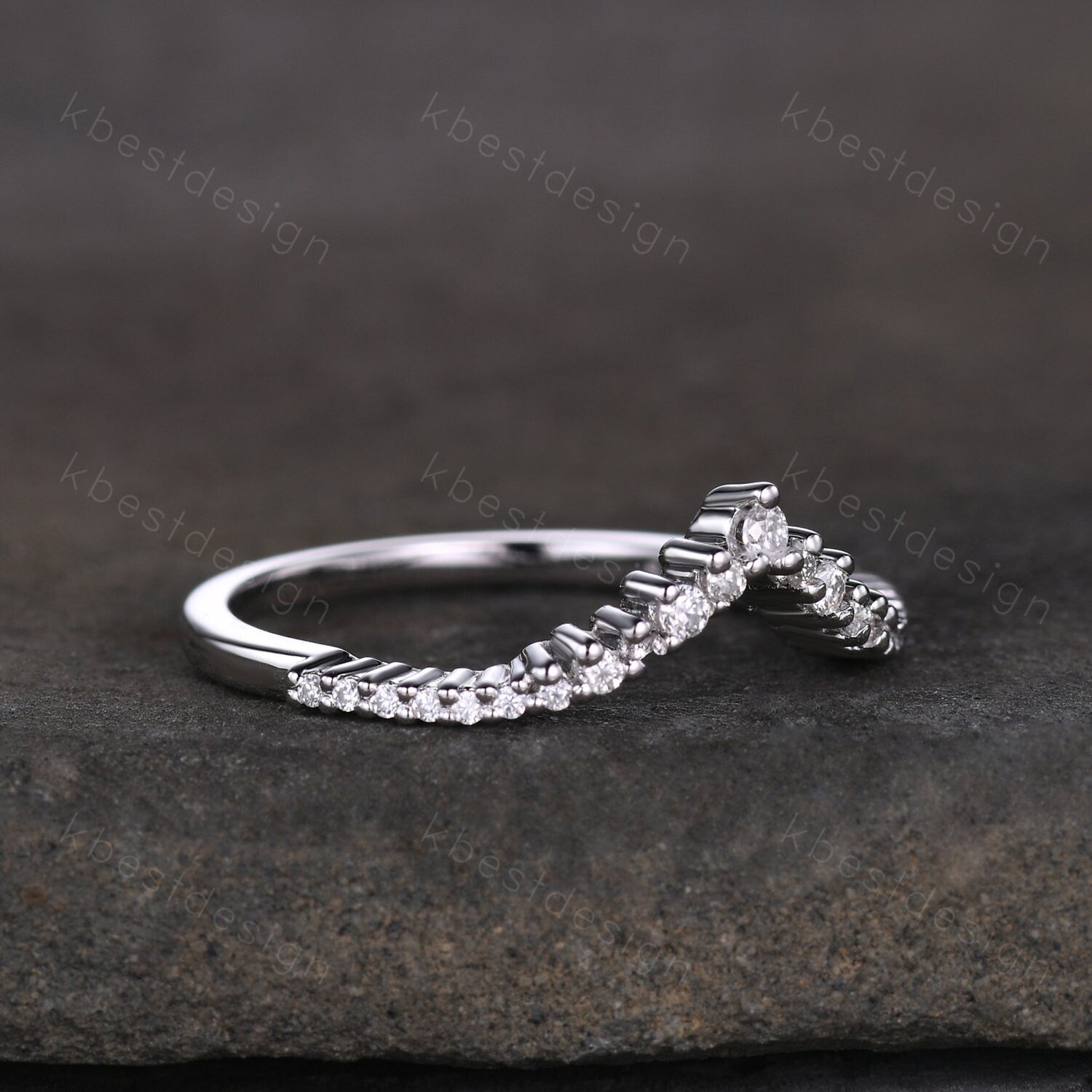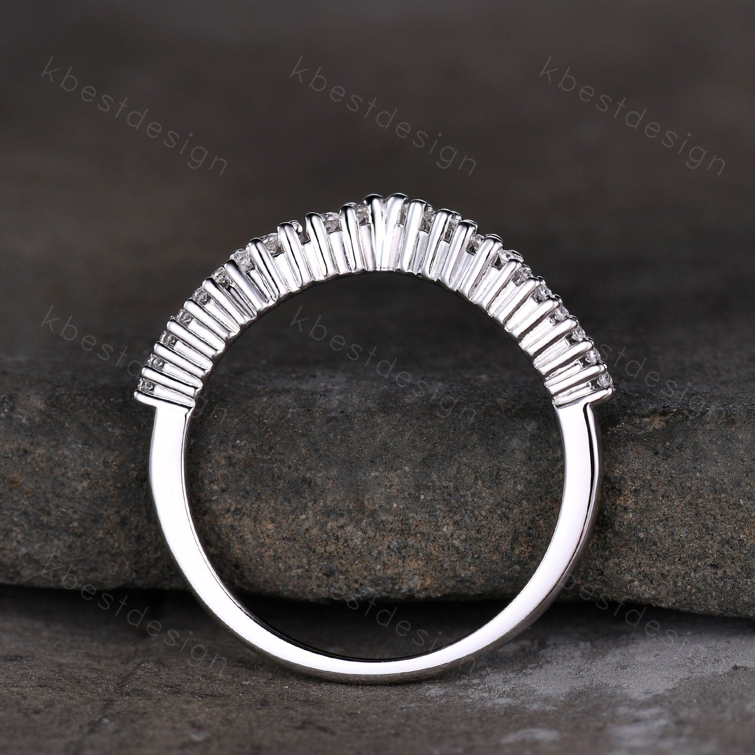 Unique curved moissanite wedding band dainty white gold band for women half eternity stacking matching band bridal anniversary band gift