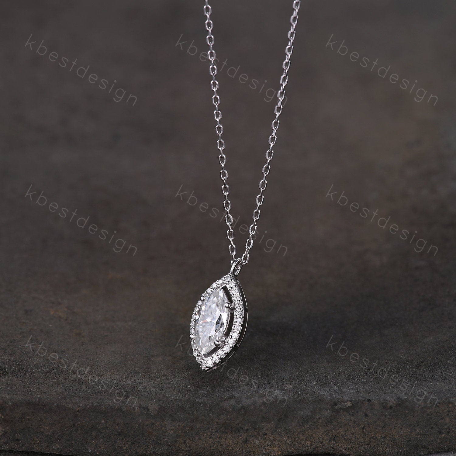 This beautiful marquise cut Moissanite Necklace surrounded by Moissanite/Simulated Diamonds. For those who are looking for agate jewelry which is handcrafted in details, this unique moissanite necklace would be a perfect choice for you. Whether it be a Birthday gift for her, an anniversary gift her, or a celebration of yourself, this moissanite jewelry is the perfect gift from the heart.