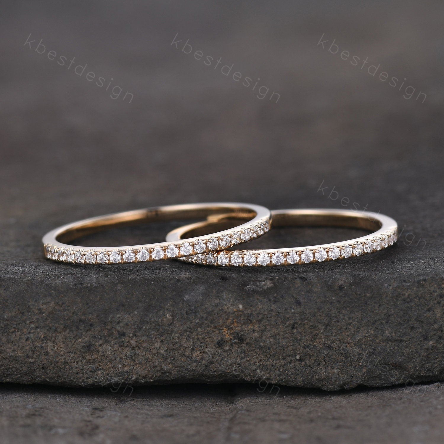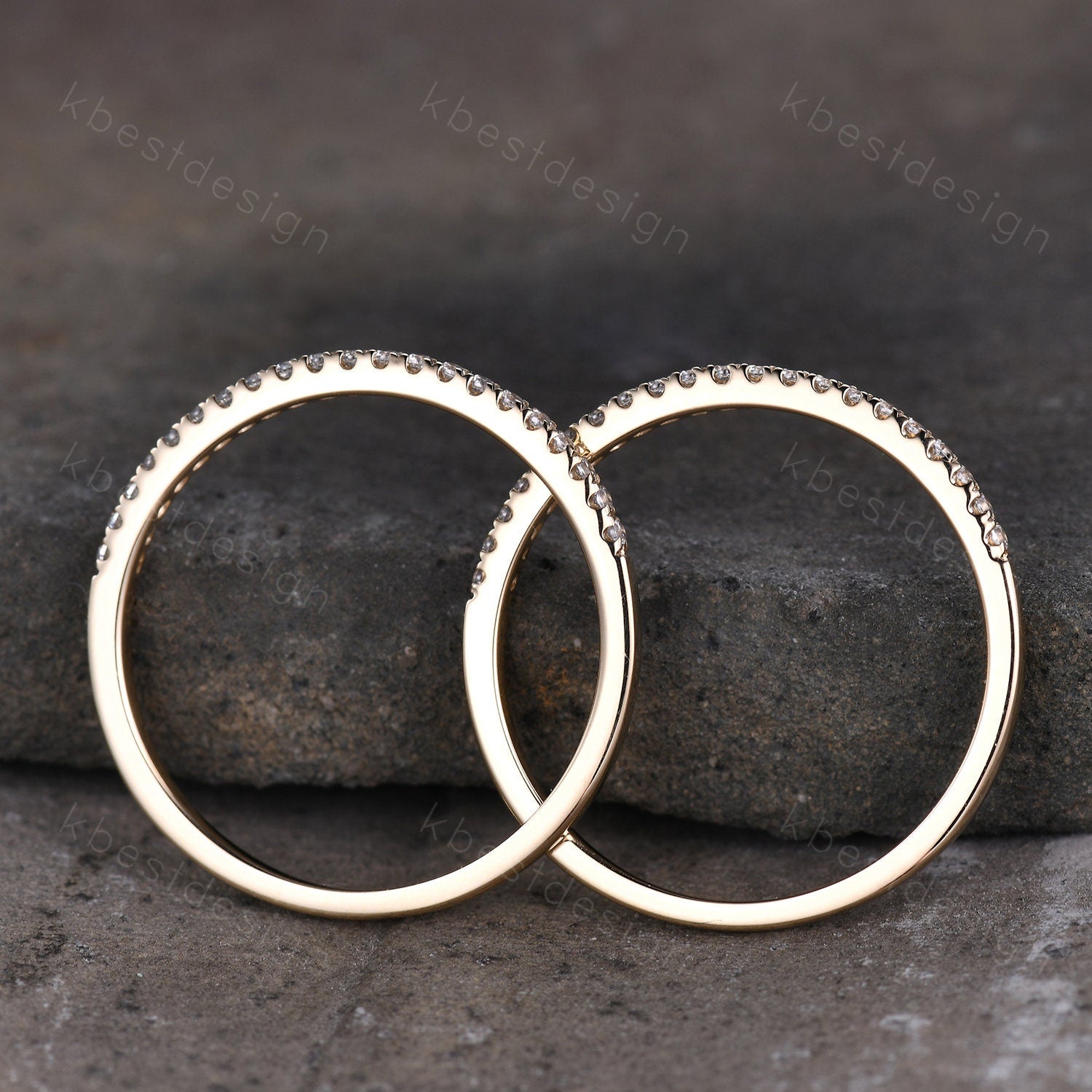 Unique Moissanite wedding band set women half eternity band 14k solid yellow gold minimalist Stacking ring dainty bridal promise ring
