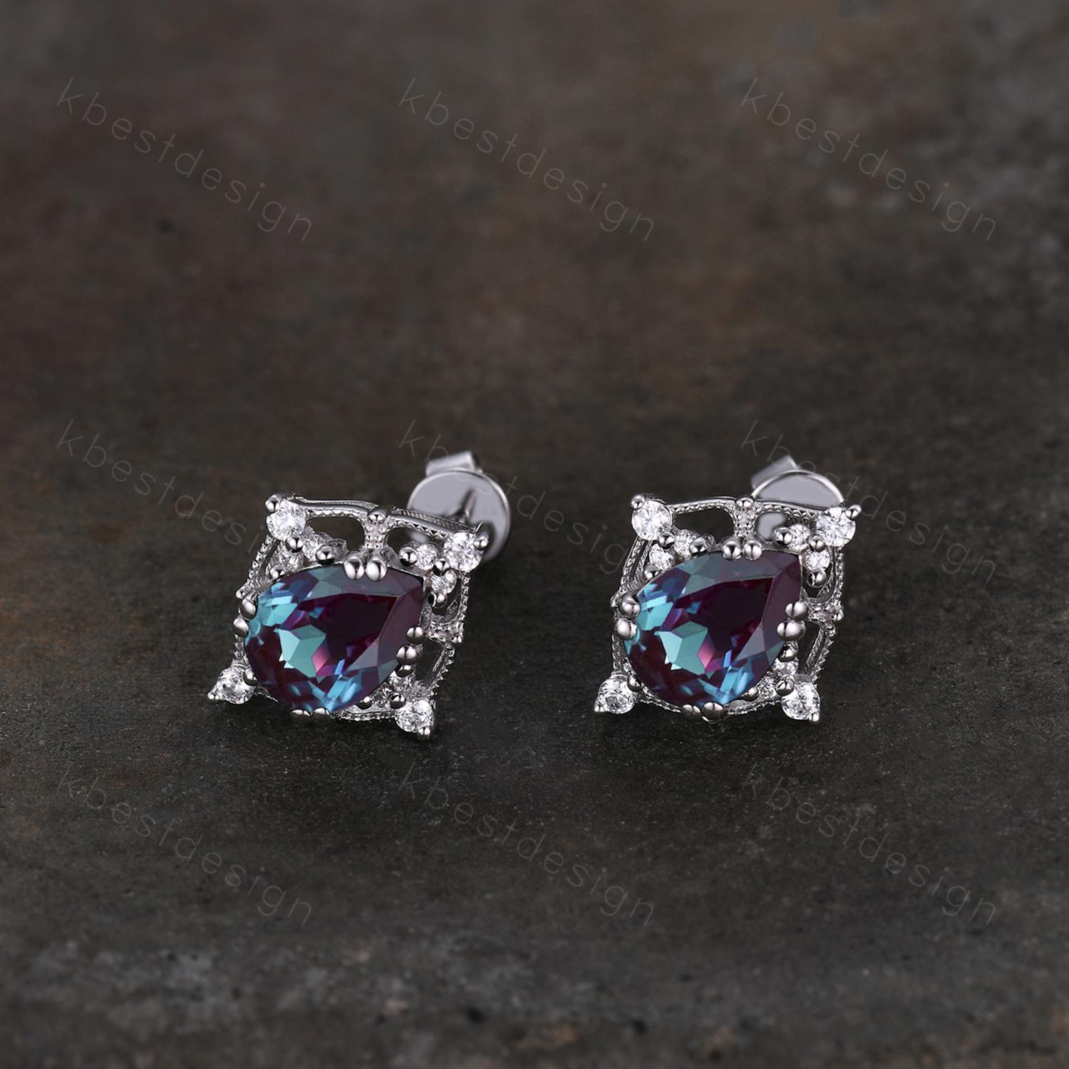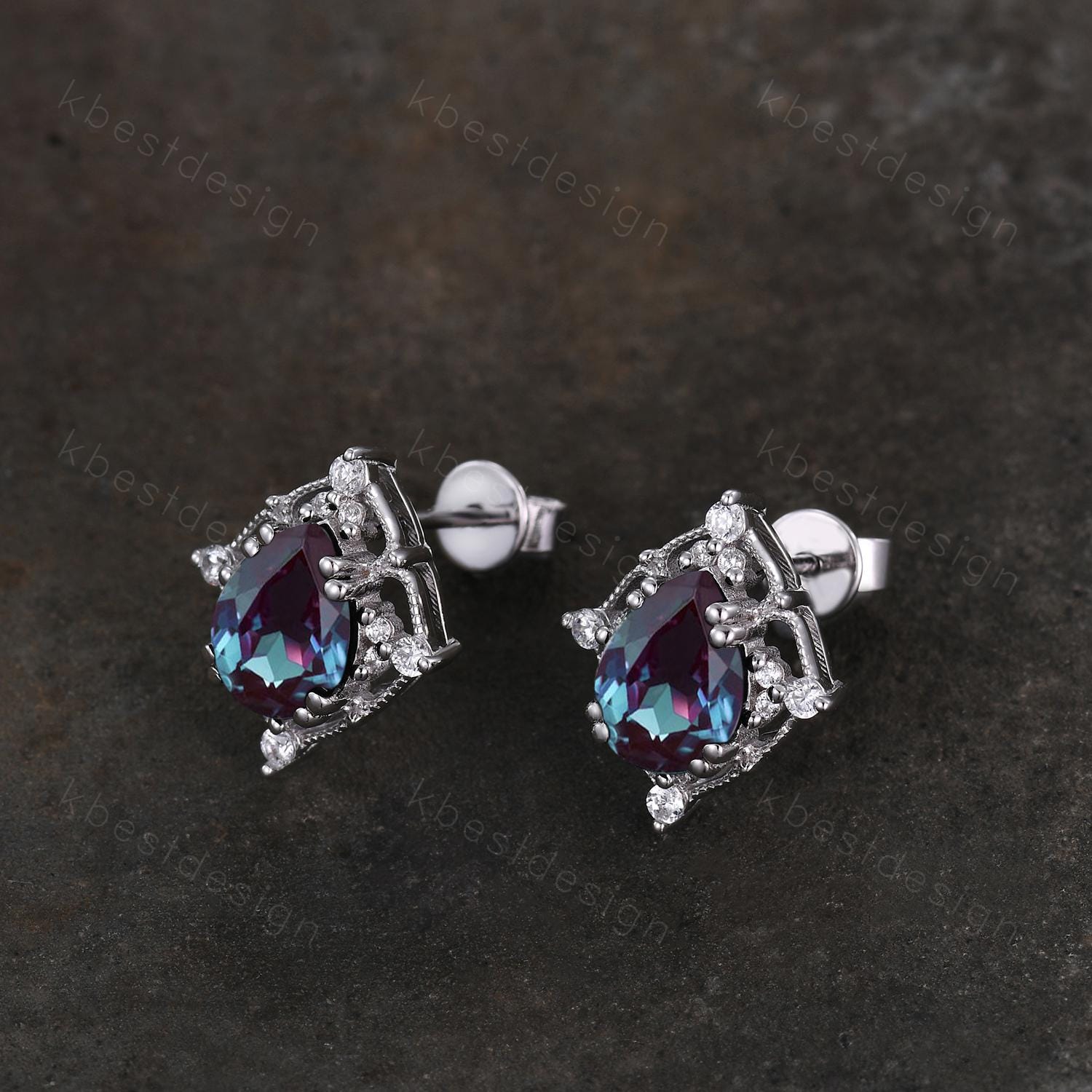 Vintage alexandrite earrings sterling silver earring studs pear cut earrings vintage women studs antique June birthstone gift for her
