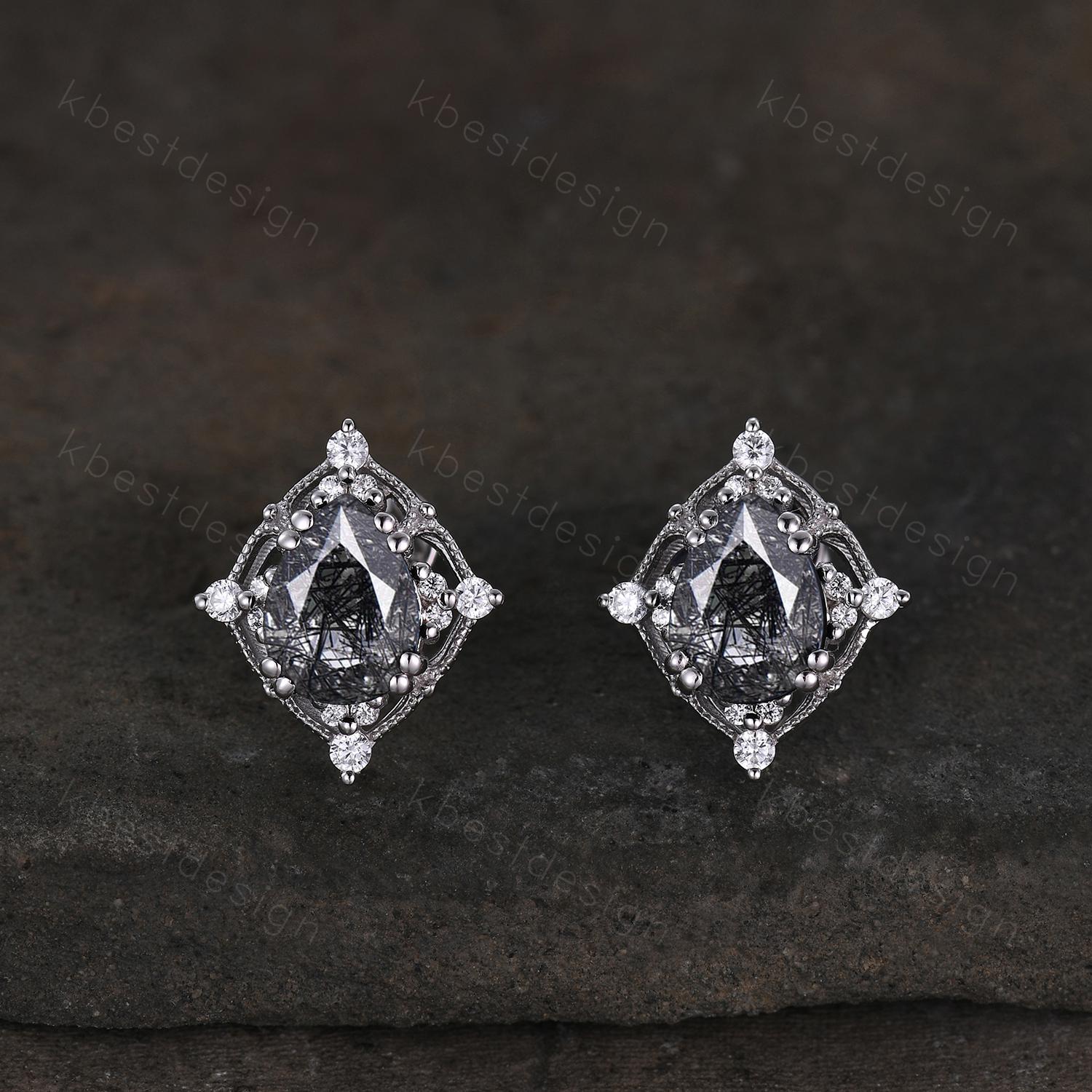 Vintage alexandrite earrings sterling silver earring studs pear cut earrings vintage women studs antique June birthstone gift for her. Each pair of earrings is lovingly made with hand selected Black ritulated quartz to add a little extra shine and magic to your look overall.