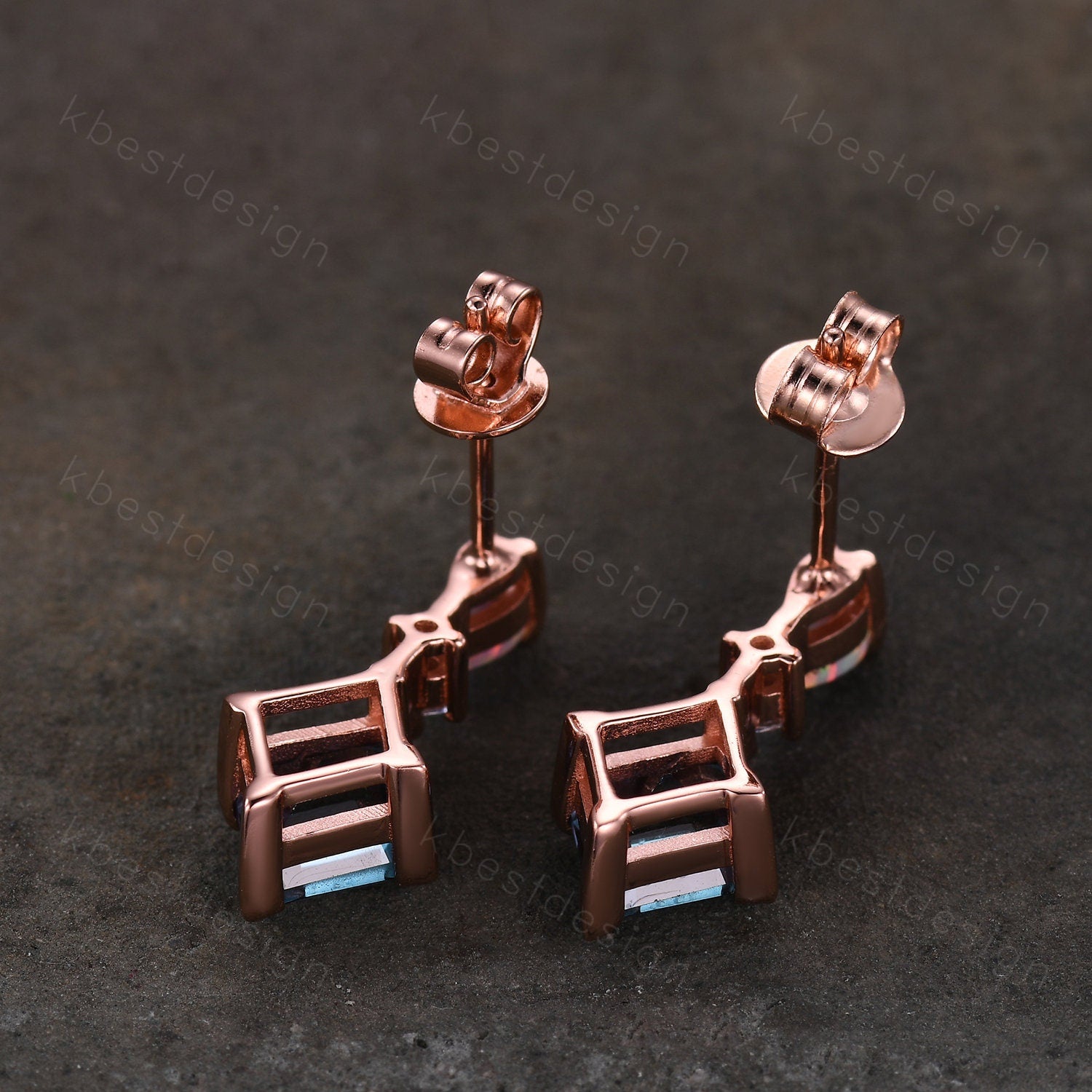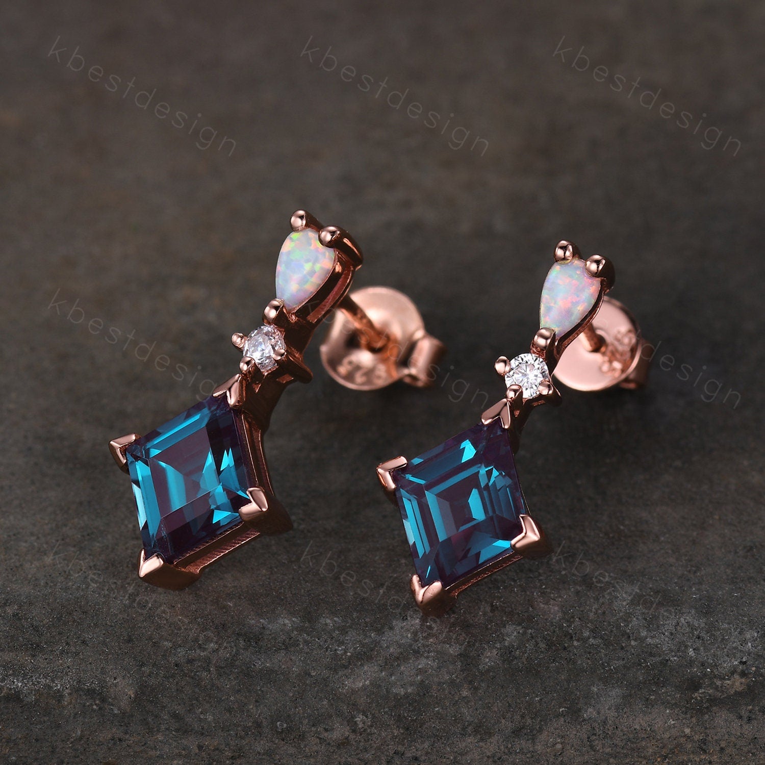 Vintage Alexandrite stud earrings, rhombus cut alexandrite opal earring studs, best friend gift, dangle studs, anniversary gift for her