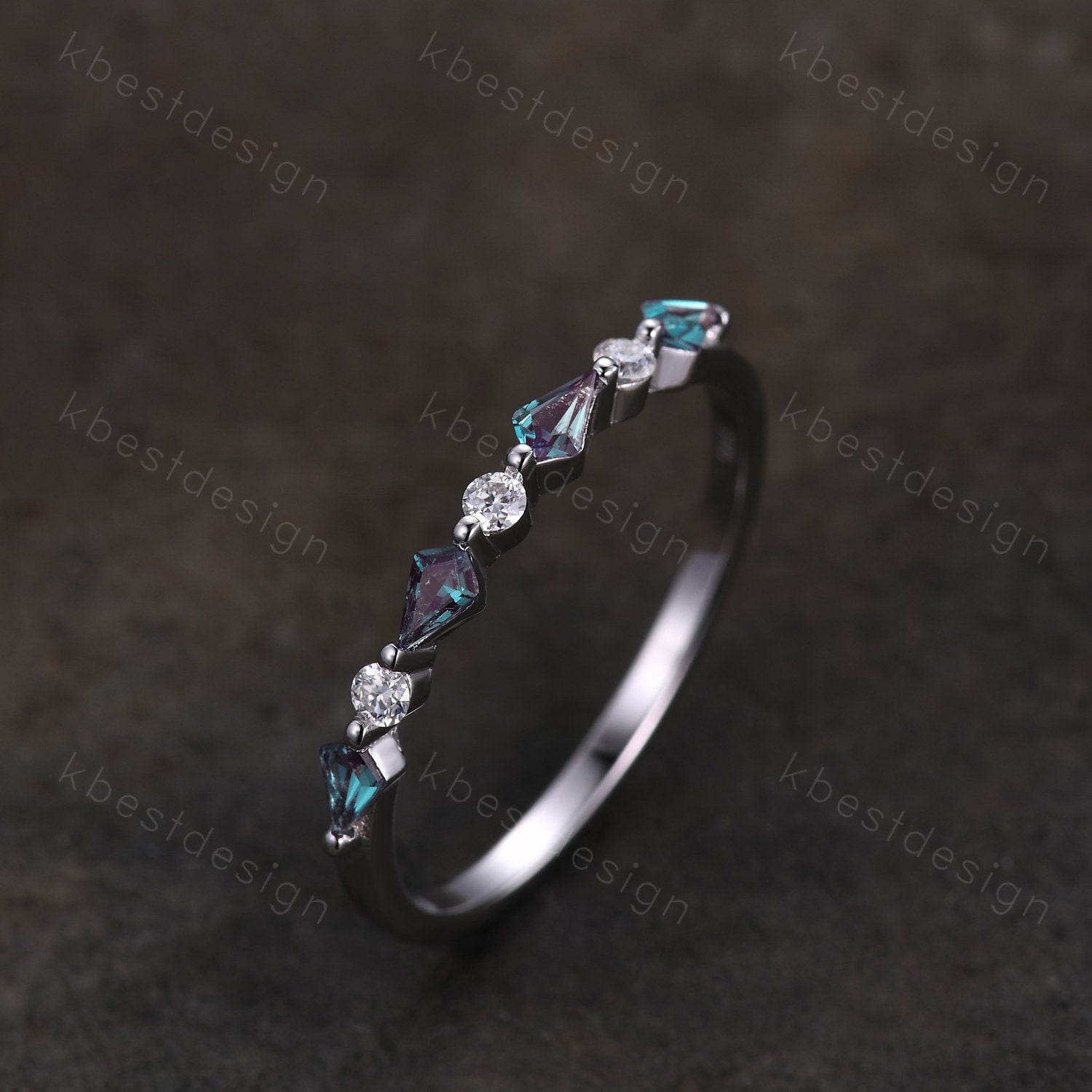 Vintage Alexandrite Wedding Band Kite cut Wedding Band Women Rose Gold Band Unique Half eternity band Delicate Stacking Band Gift for Her.