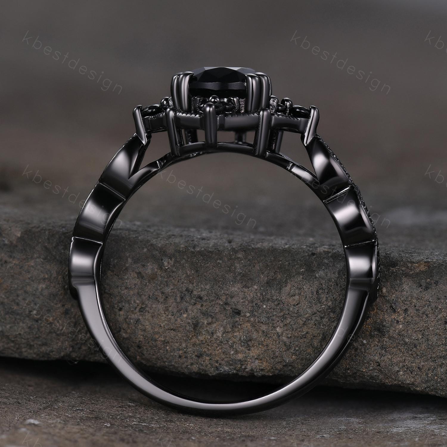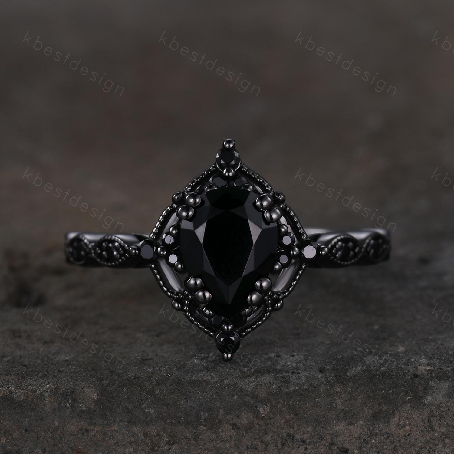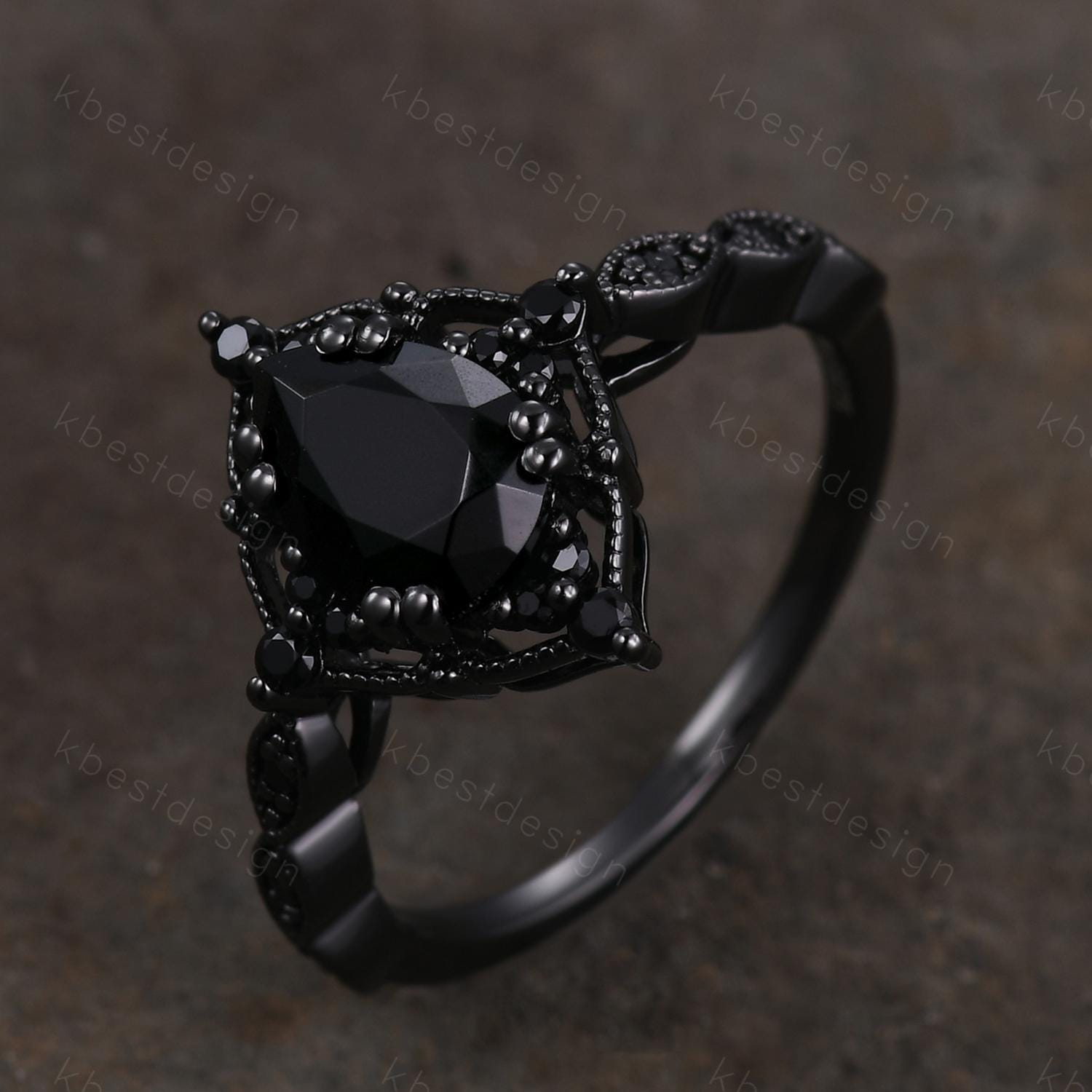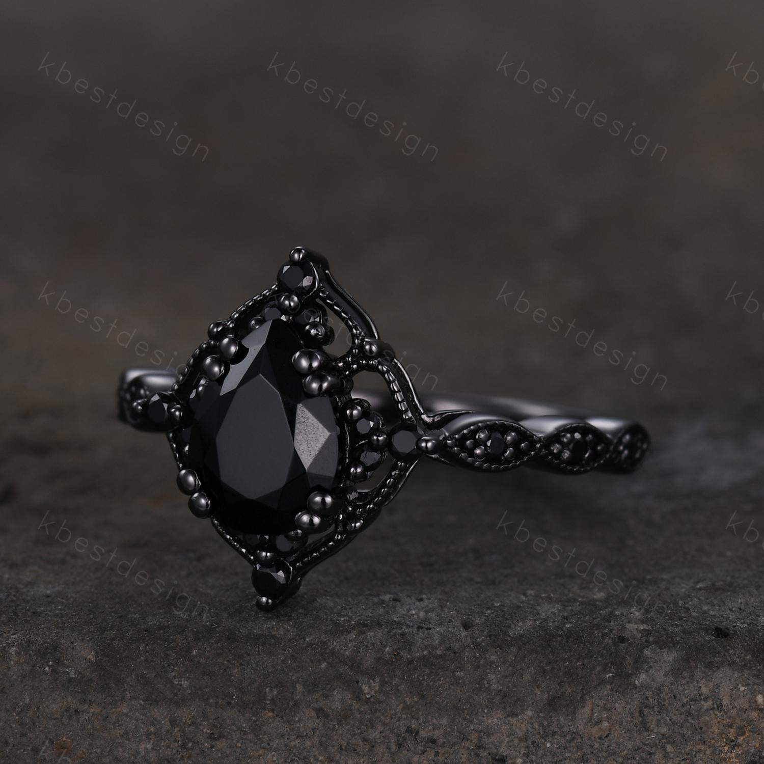 This is a beautiful Vintage black onyx engagement ring art deco black gold ring pear shaped black gemstone ring unique black spinel ring Promise ring.