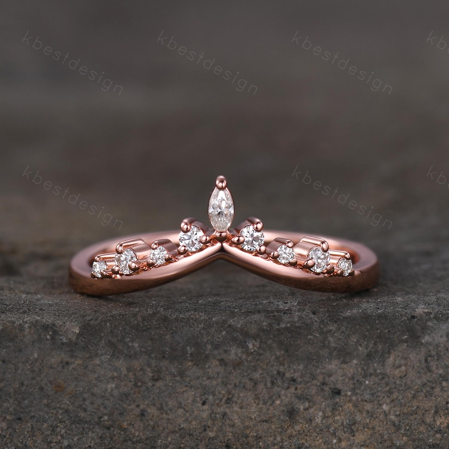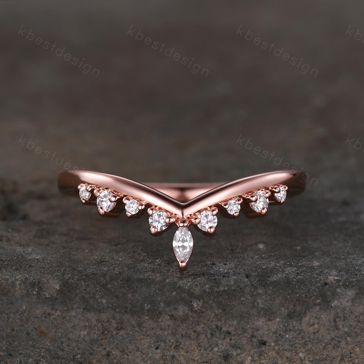 This is a Vintage Curved Moissanite Wedding Band Rose Gold Stacking Band Unique Matching Band for Women Moissanite Jewelry Anniversary Gift.