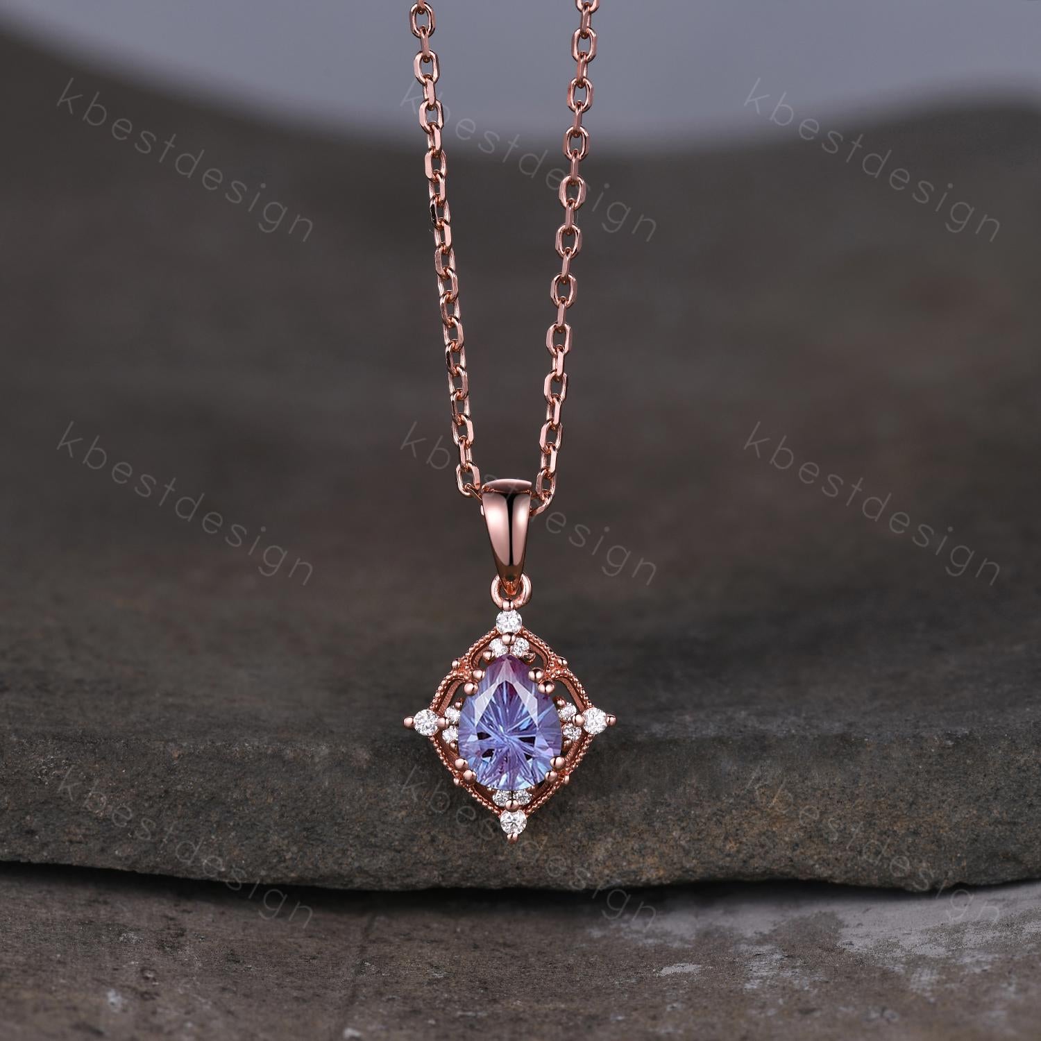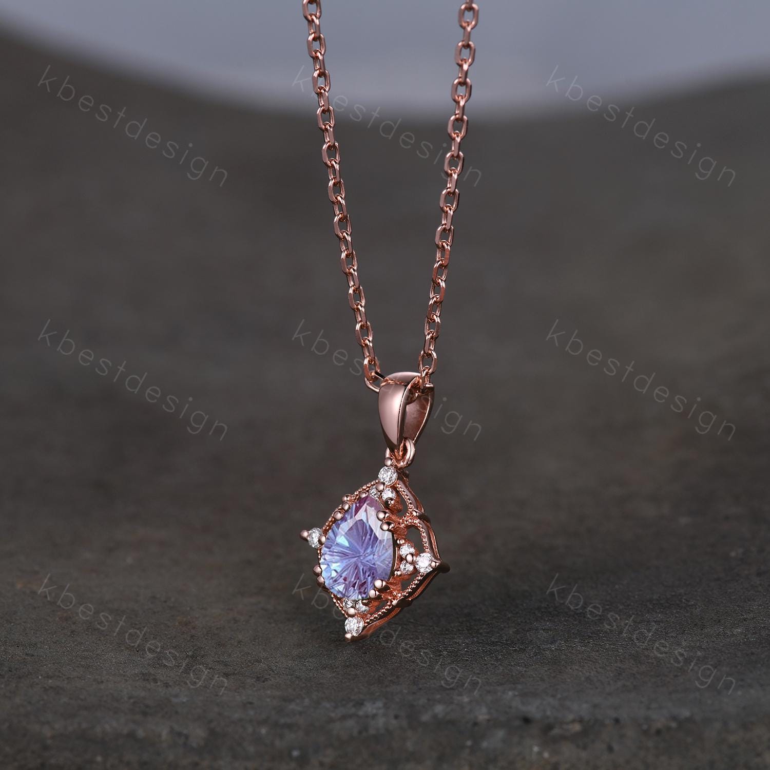 Vintage firework alexandrite necklace rose gold necklace art deco Personalized pendant for women unique moissanite promise anniversary gift