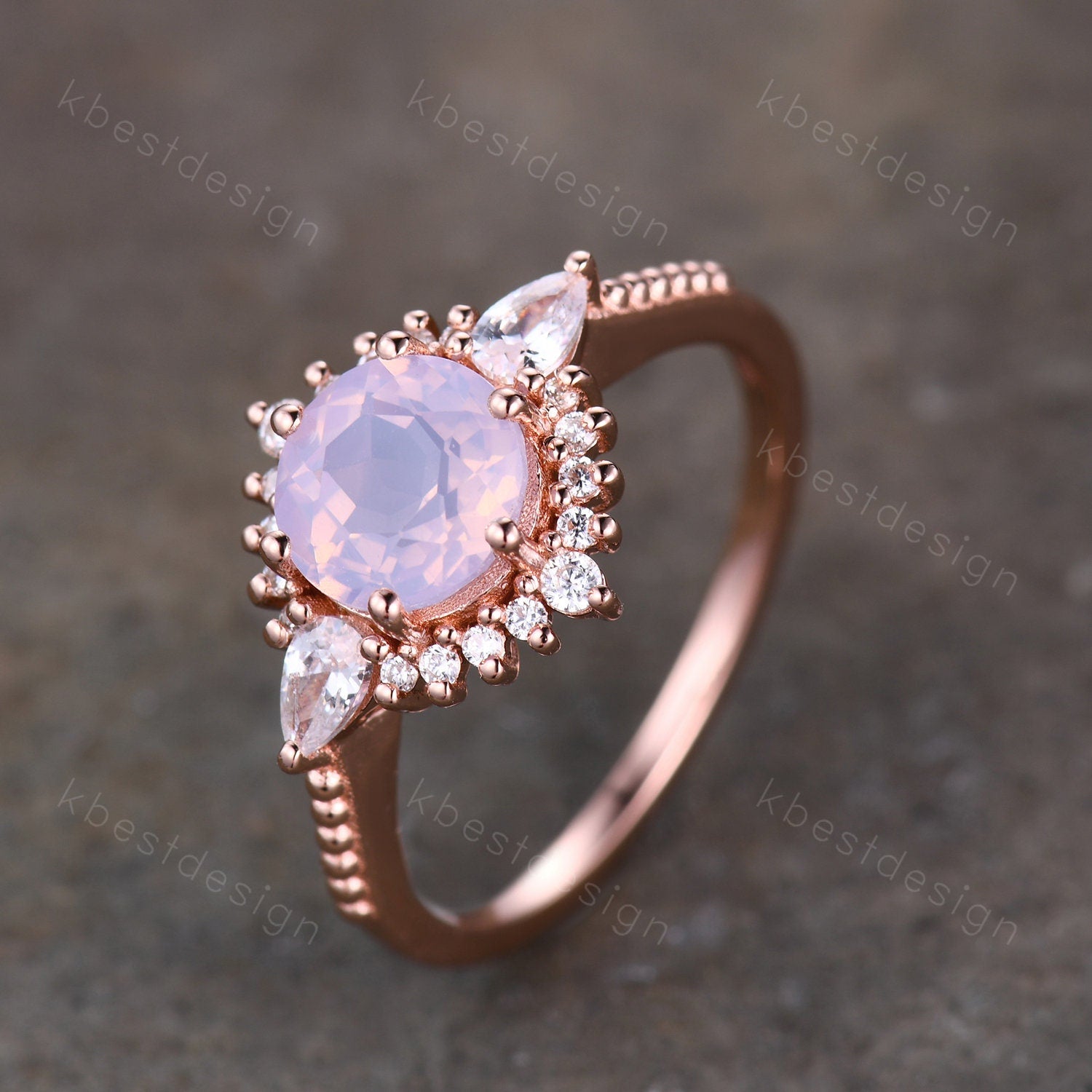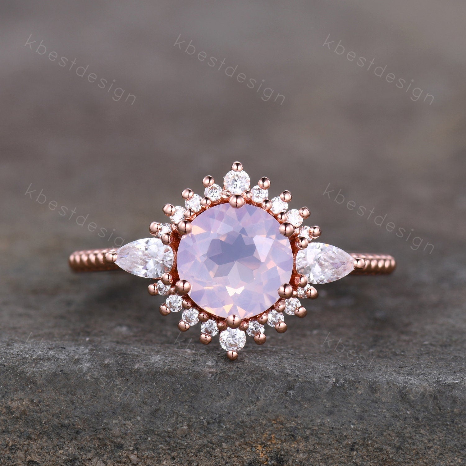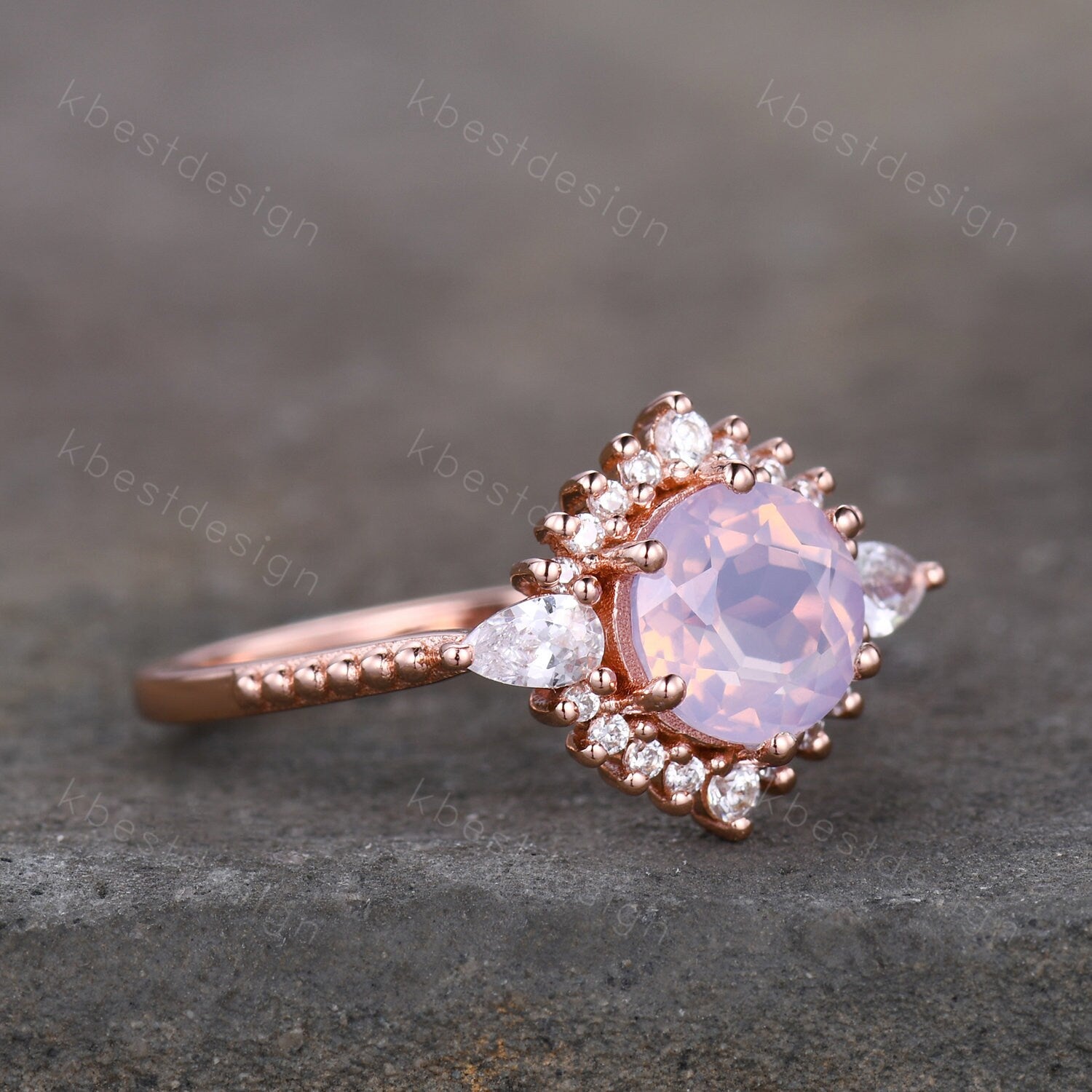 Vintage Lavender Amethyst Ring Rose Gold Round Cut Amethyst Engagement Ring Unique Art Deco Pear Shaped Diamond Bridal Promise Ring