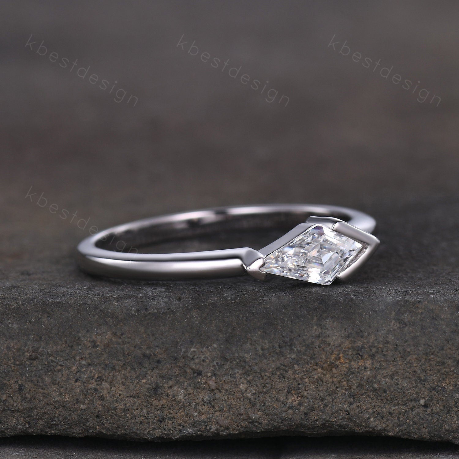 Vintage Moissanite Engagement Ring, Kite Cut Ring, Art Deco Moissanite Wedding Band, Unique Women Bridal Promise Ring, Silver Ring