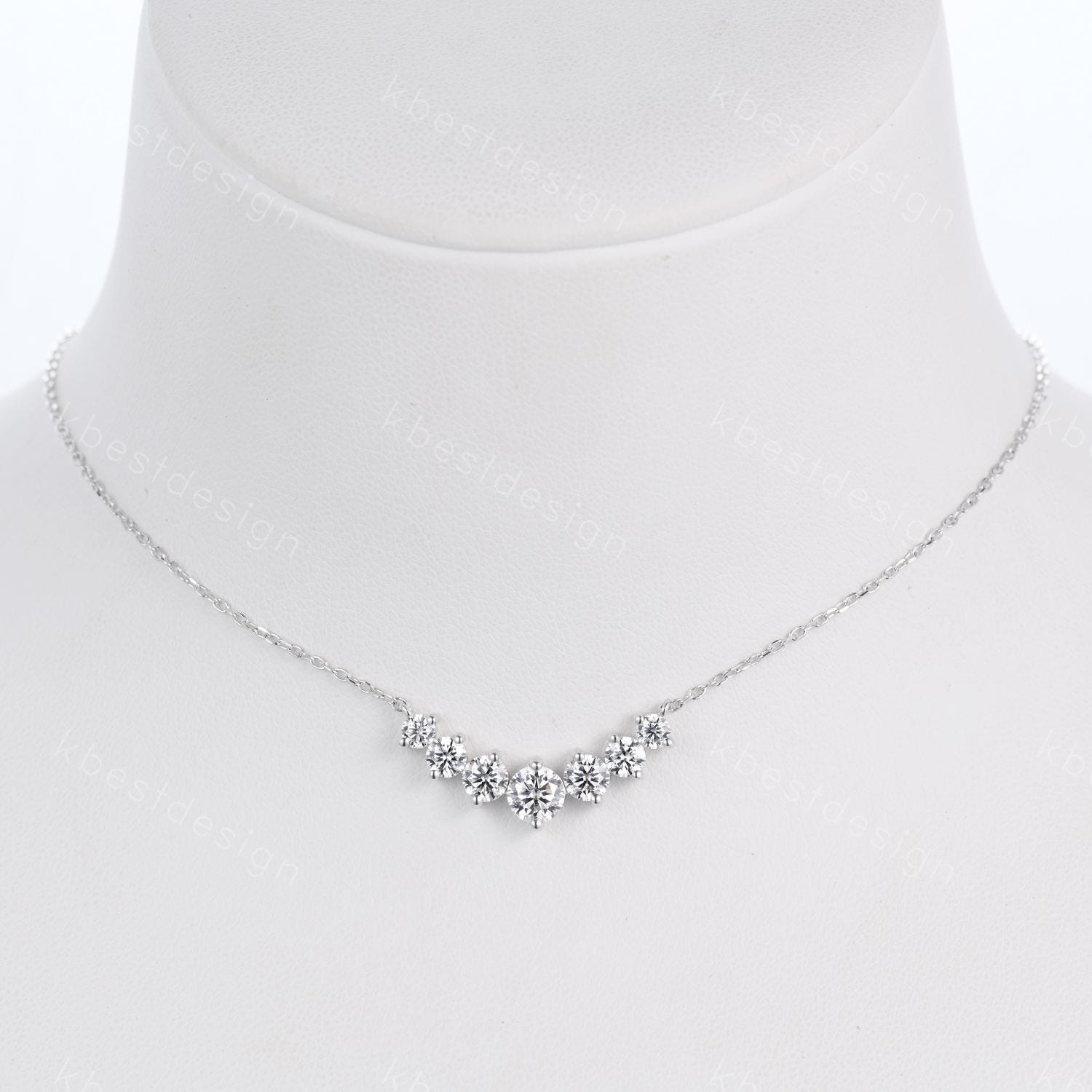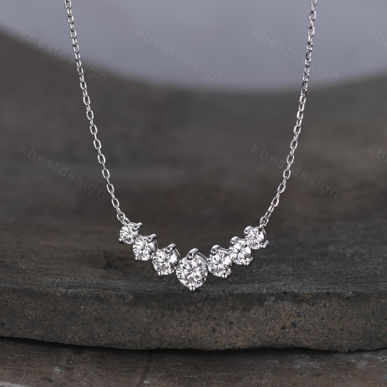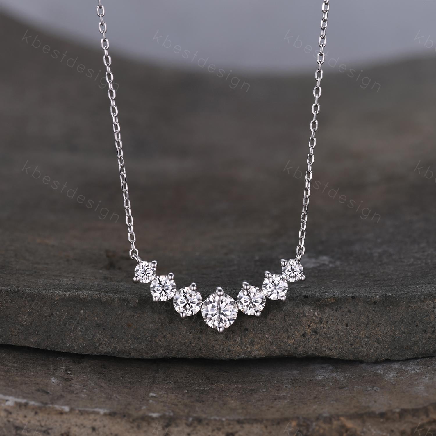 Vintage moissanite necklace sterling silver necklace art deco 7 stone pendant necklace for women unique moissanite promise anniversary gift
