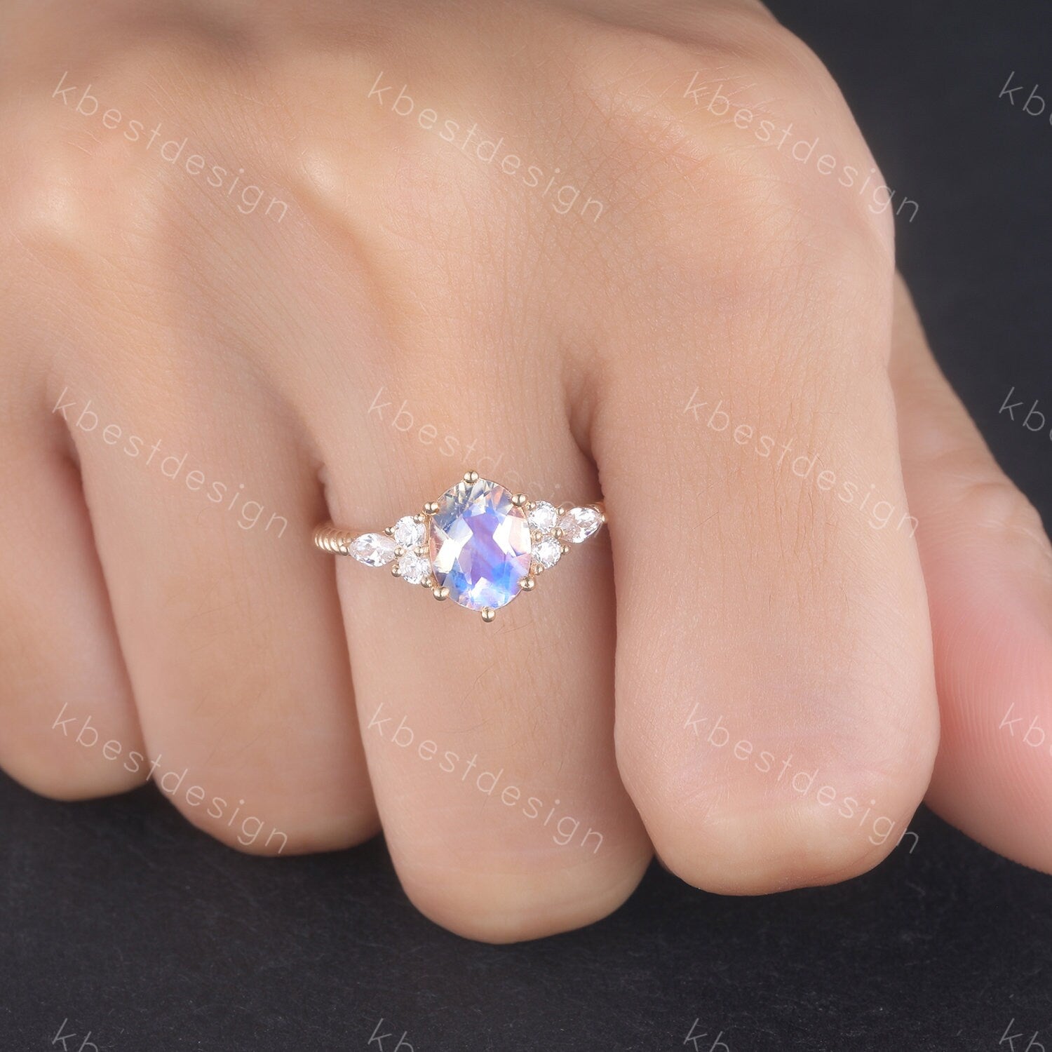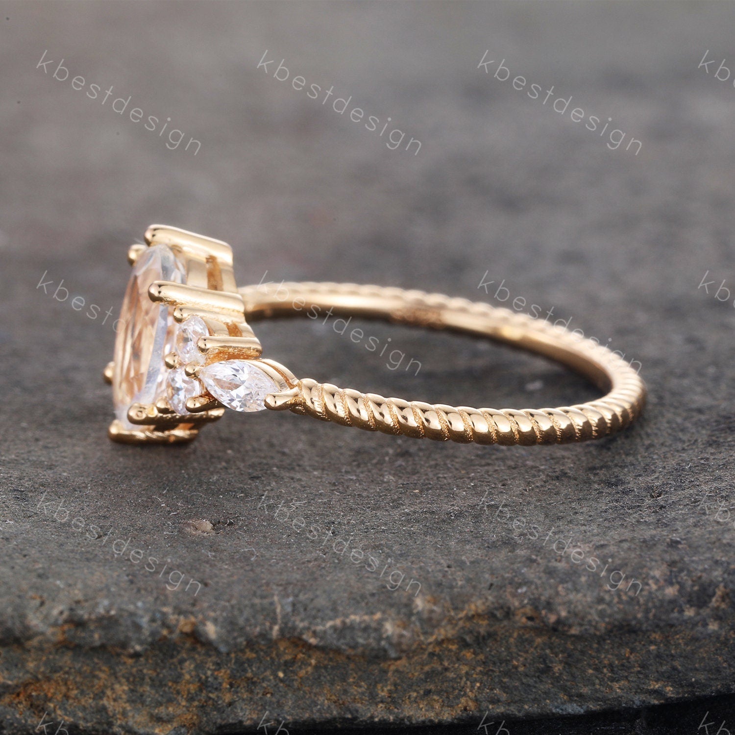 Vintage Moonstone Engagement Ring Art Deco Wedding Ring Unique Eternity Twist Band Yellow Gold Moonstone Ring Bridal Anniversary Ring
