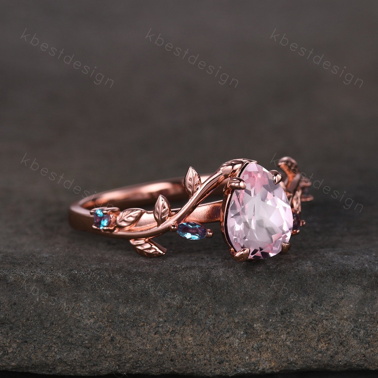 Vintage pink sapphire engagement ring rose gold leaf design alexandrite wedding ring art deco nature branch ring unique bridal promise ring