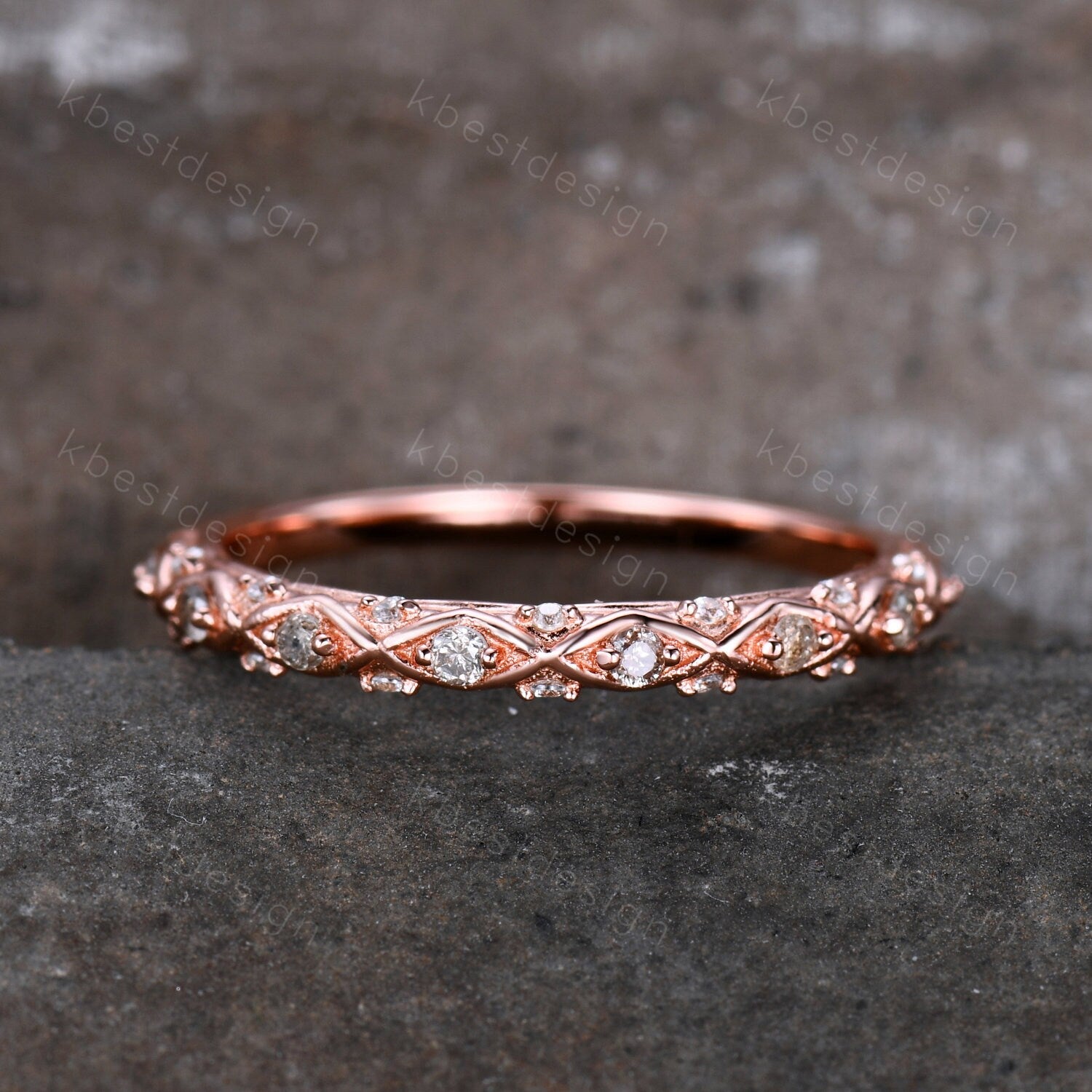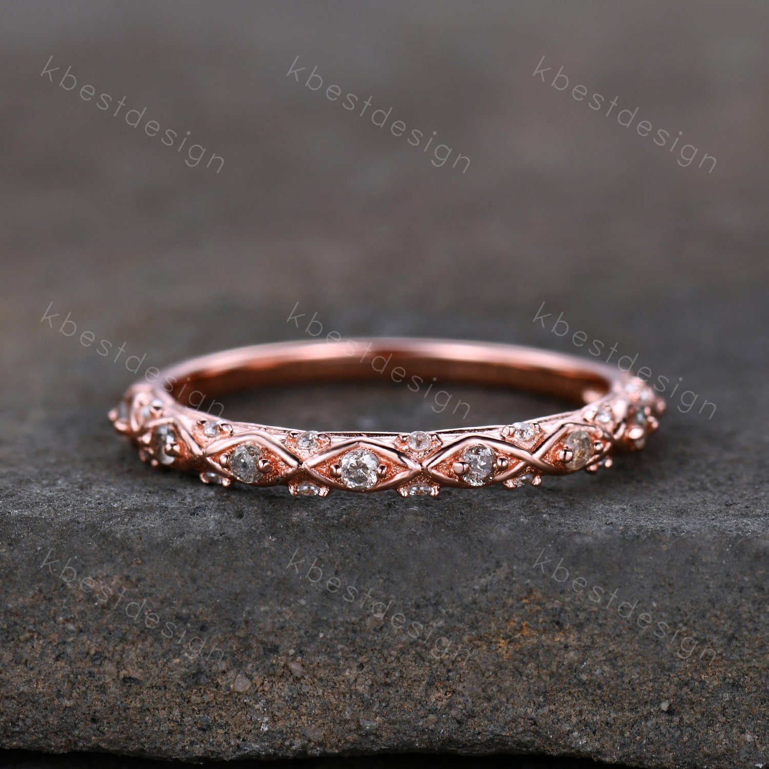 Vintage Rose gold Natural Diamond wedding band Unique Salt and pepper diamond wedding band Half Eternity Stacking Matching band Gift for Her