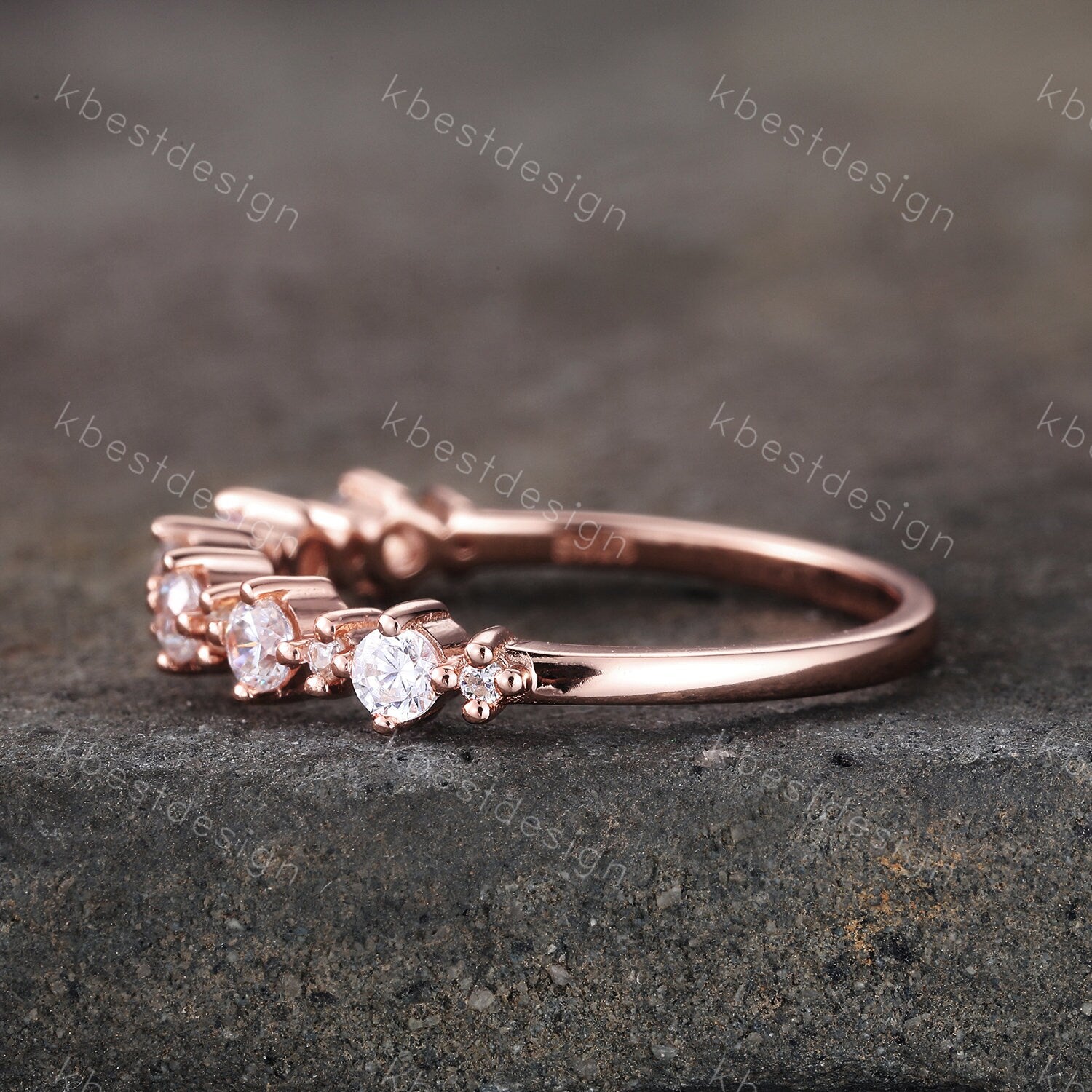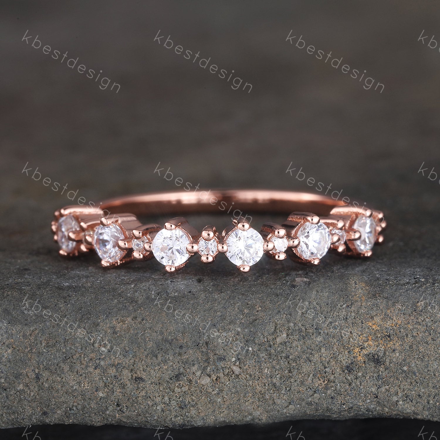 Vintage Rose gold wedding band women Round cut Half eternity band Unique Stacking Matching bridal ring Sterling Silver Diamond wedding ring