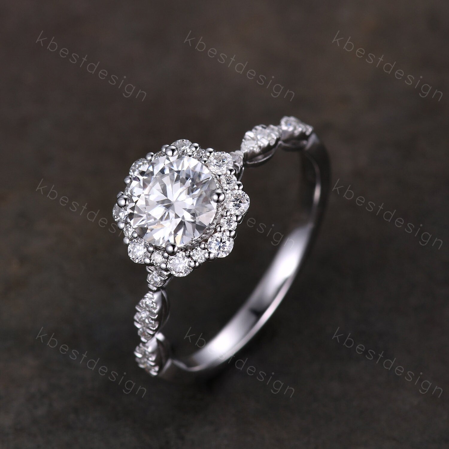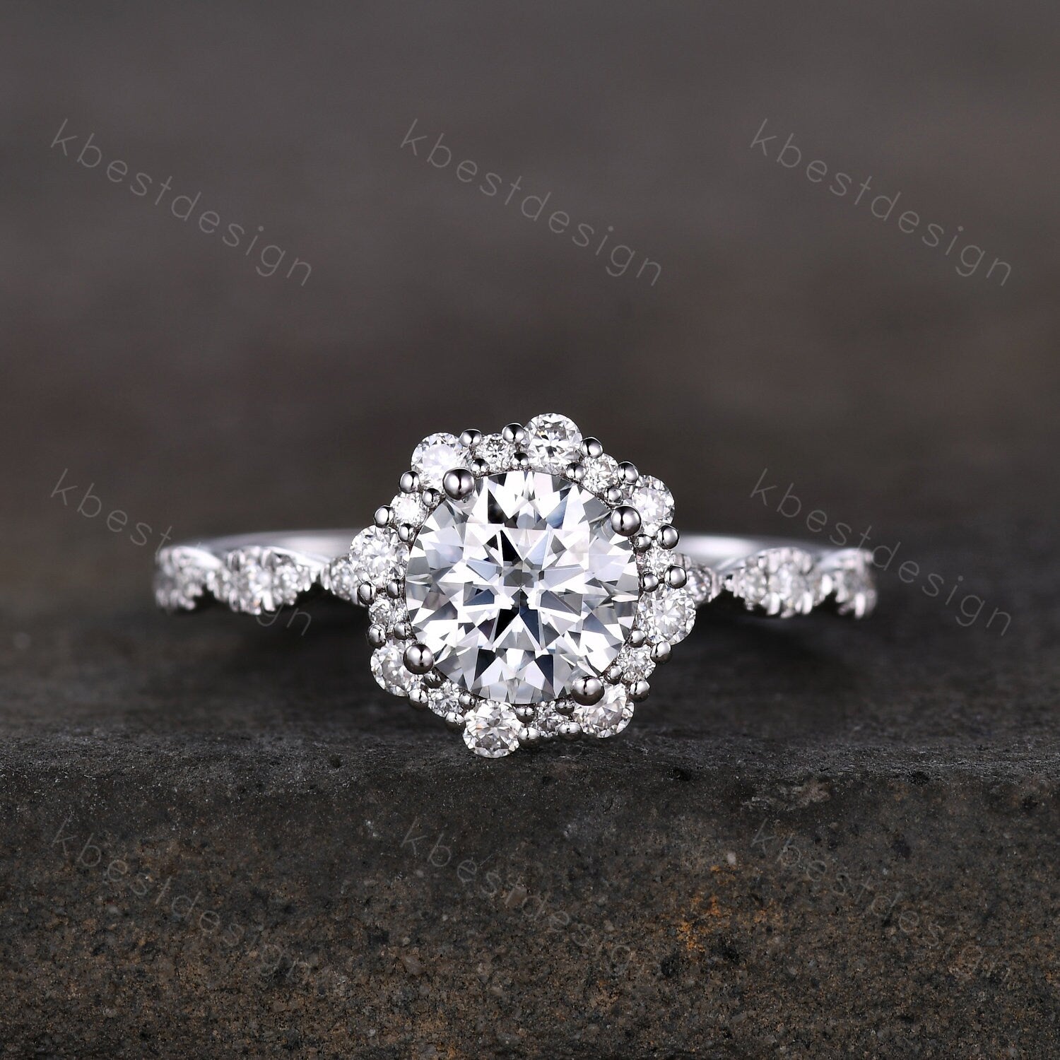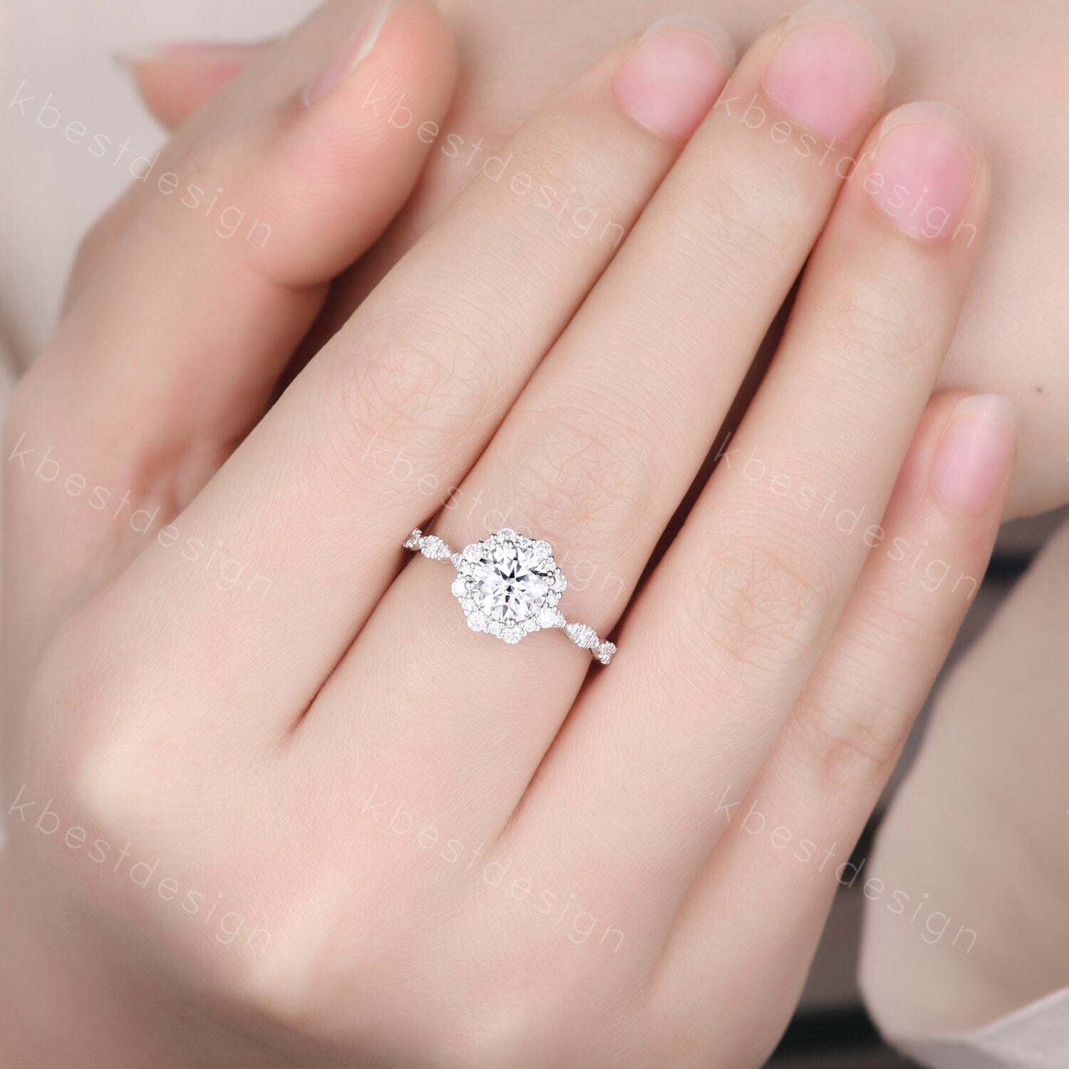 Perfect for birthday gift, anniversary gift, promise gift. Vintage round Moissanite engagement ring white gold unique halo engagement ring art deco diamond wedding ring women retro anniversary ring.