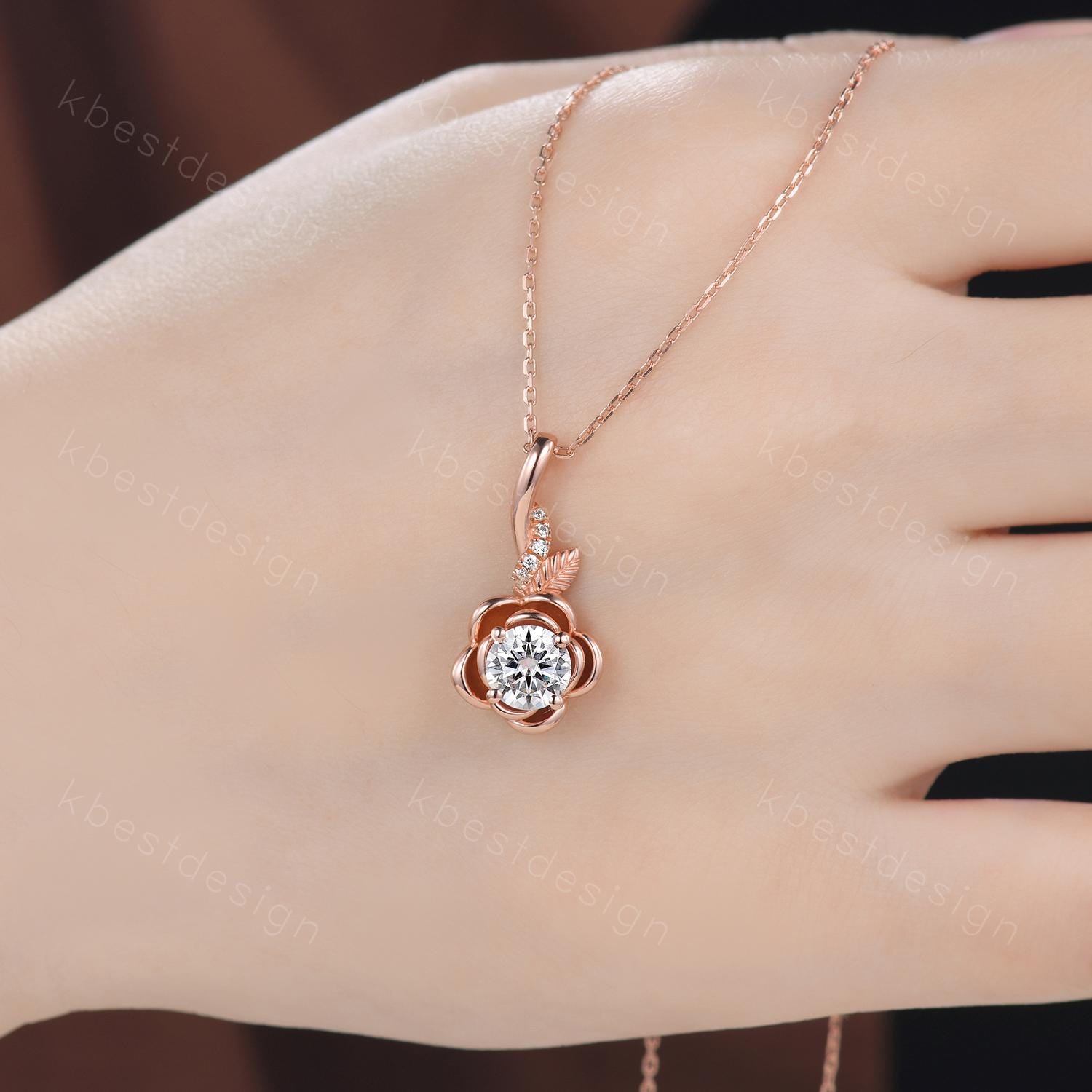 Vintage round Moissanite necklace antique floral leaf pendant necklace rose gold nature inspired necklace Moissanite gift for her. For those who are looking for moissanite jewelry which is handcrafted in details, this unique necklace would be a perfect choice for you. Whether it be a Birthday gift for her, an anniversary gift her, or a celebration of yourself, this alexandrite jewelry is the perfect gift from the heart.