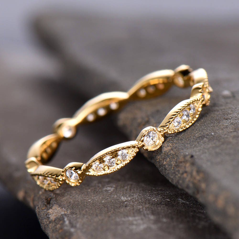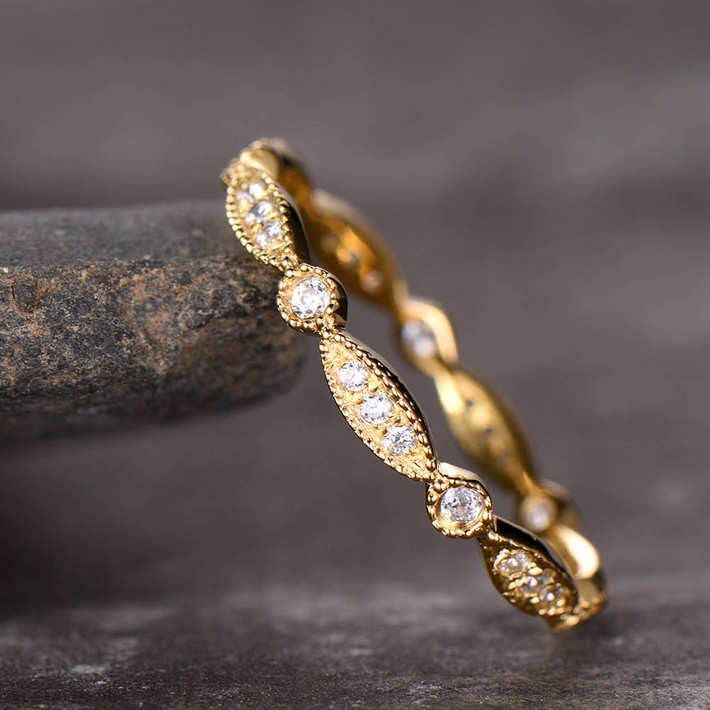 Vintage Wedding Band Art Deco Wedding Band Milgrain Marquise Matching Band Sterling Silver Anniversary Ring Yellow Gold Plated